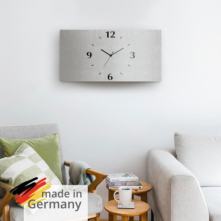 - VERWENDUNG: Unsere analoge Wanduhr aus Aluminium im Modern Look eignet sich für alle Wände in Wohnzimmer, Schlafzimmer, Büro, Flur, Küche oder Esszimmer - Fertig zum Aufhängen geliefert