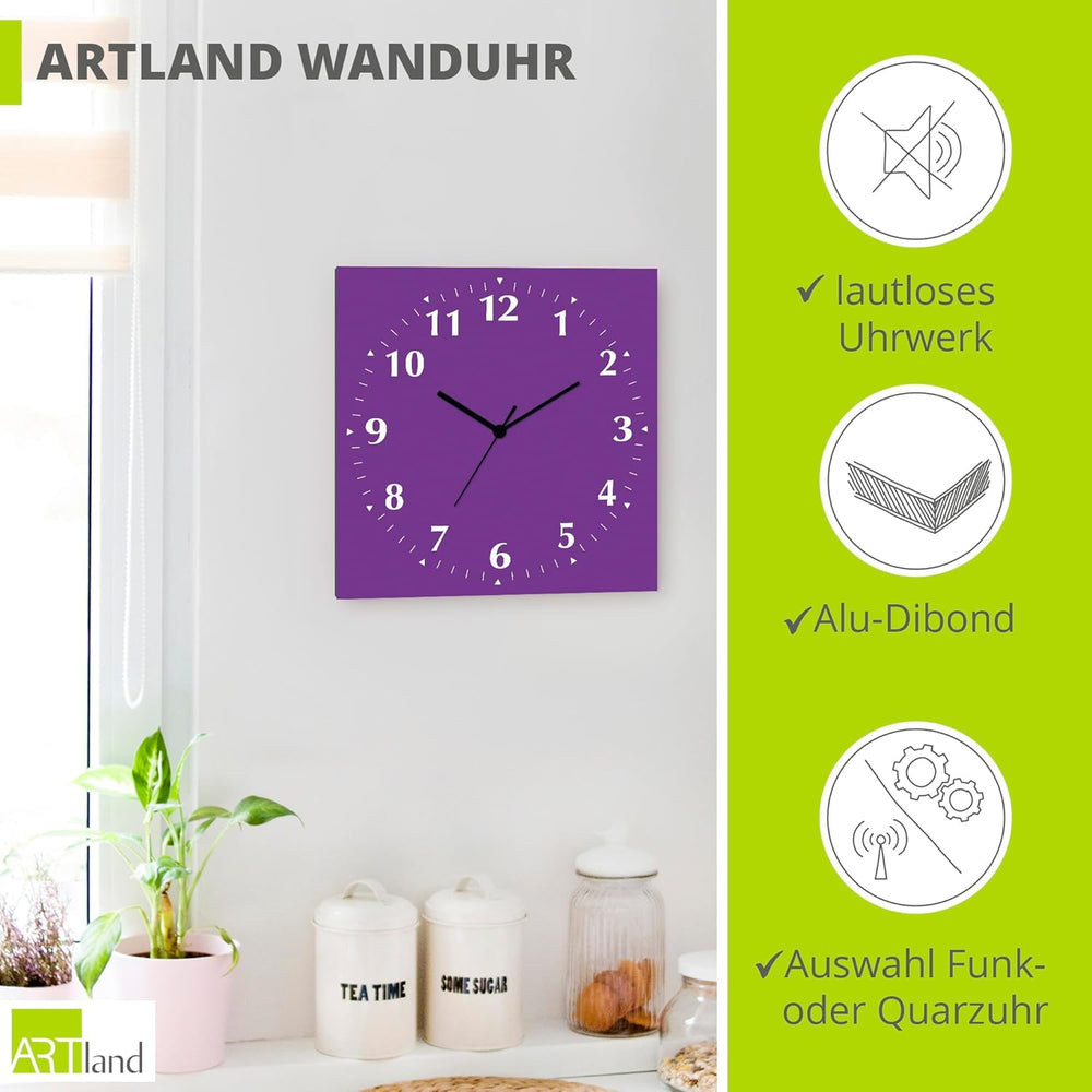 ARTLAND Wanduhr ohne Tickgeräusche Alu Funkuhr 30x30 cm Quadratisch Lautlos 12 Ziffern Farbig Schlic