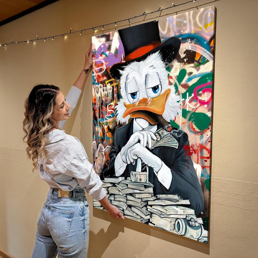 - SETZEN SIE AUF VERLÄSSLICHE FARBEN | Geniessen Sie ihr Dagobert Duck Leinwandbild über viele, viele Jahre. Unser Druckverfahren zeichnet sich durch eine überlegene Farbechtheit aus, die sich über Jahre hält und sich vor allem für grosse Bilder für