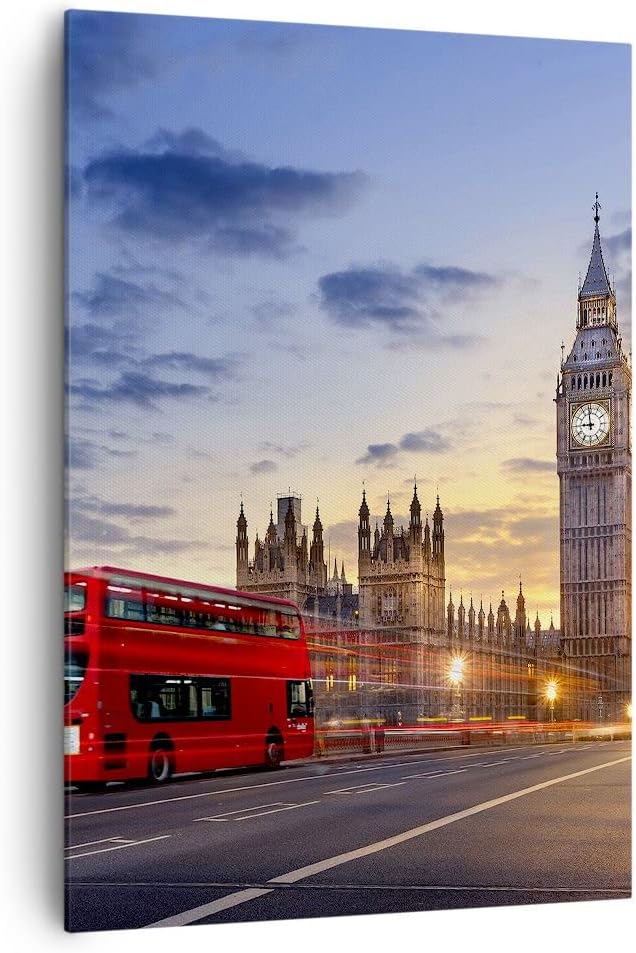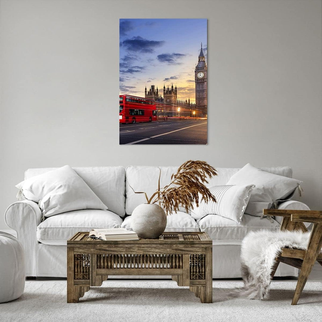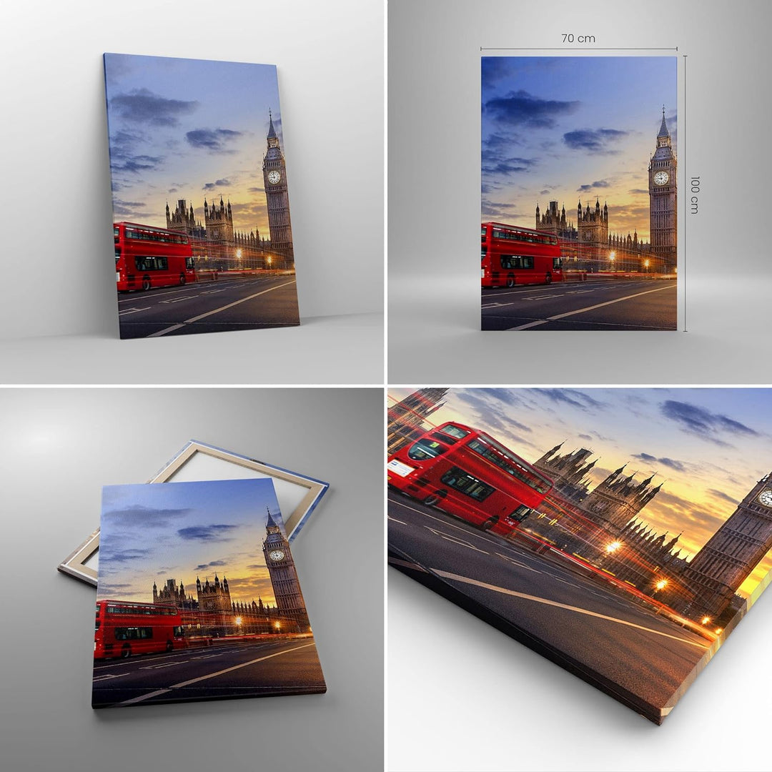 ARTTOR Bilder auf Leinwand 70x100cm Leinwandbild mit Rahmen London Bus Gross Wanddeko Bild Schlafzim