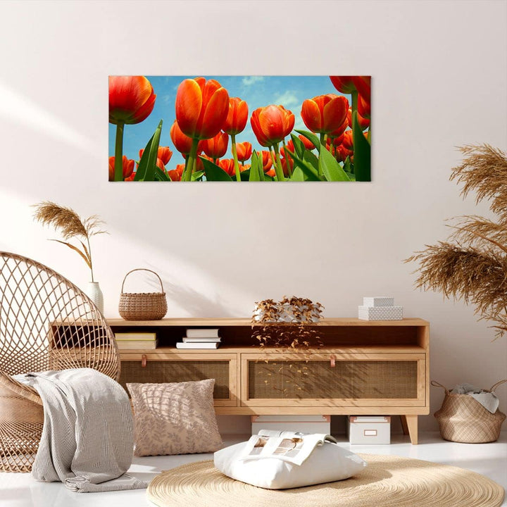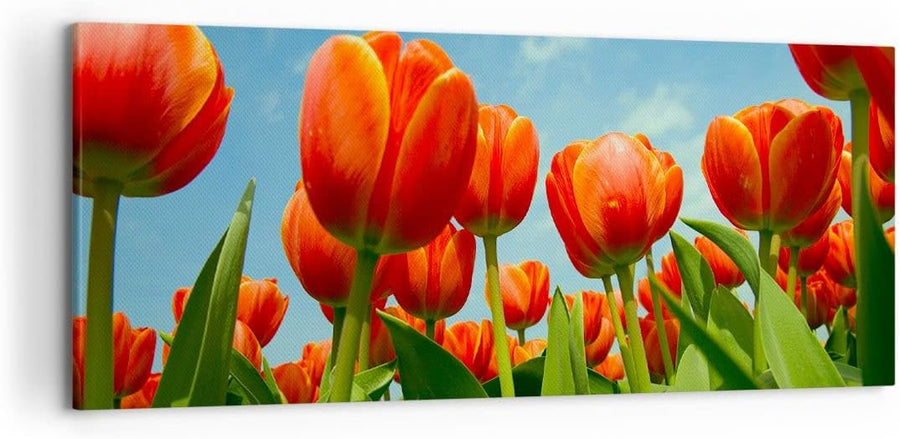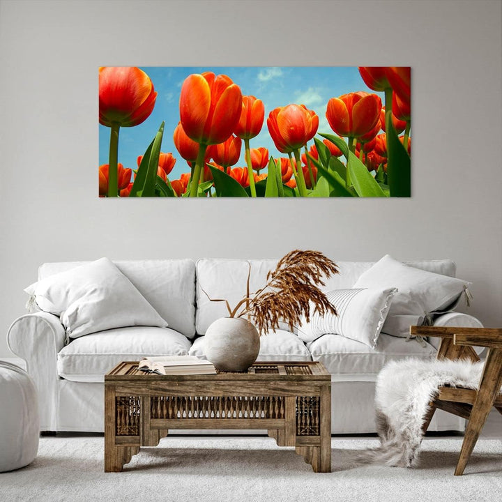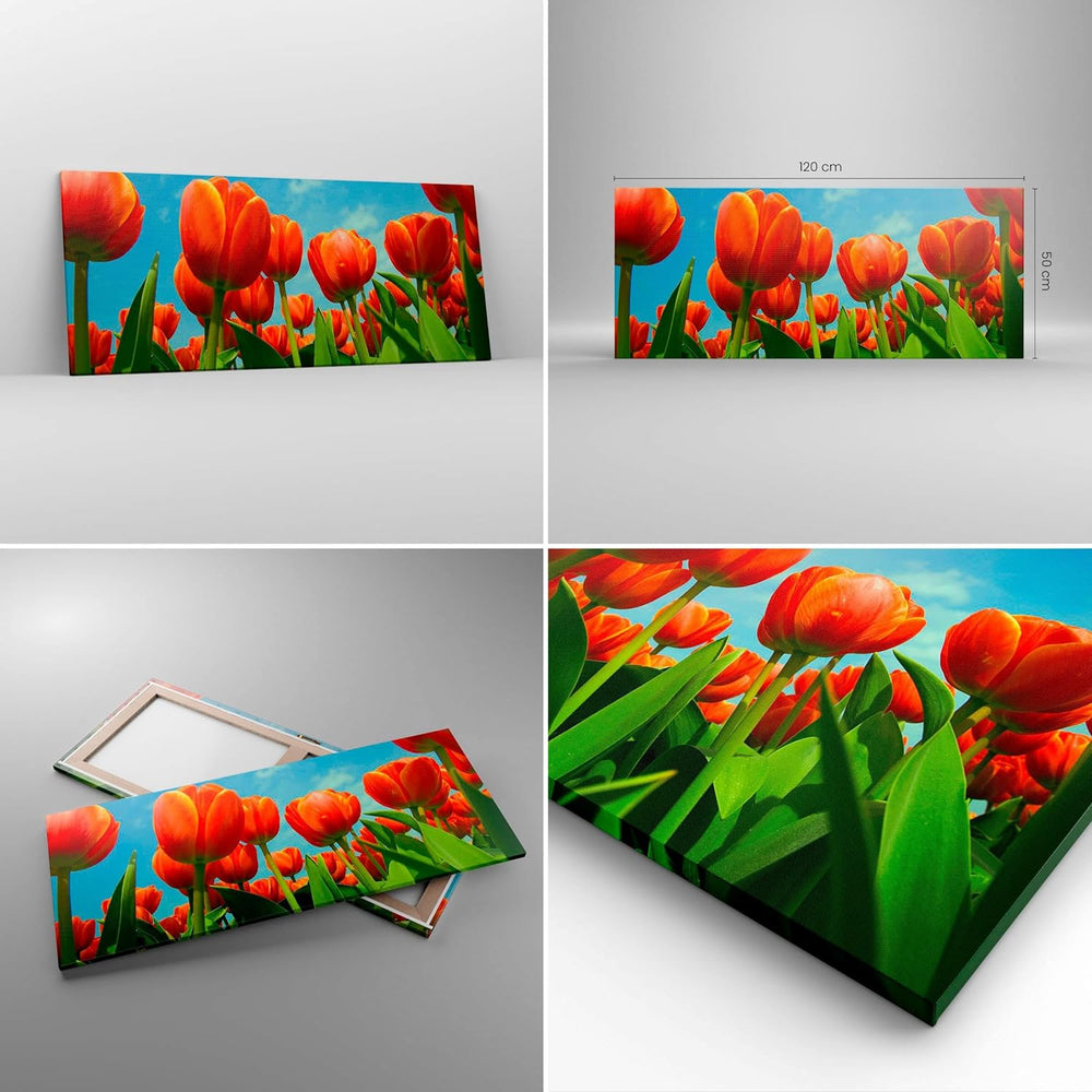 Wandbilder Dekoration Wohnzimmer Tulpe Blume blauer Himmel Panorama Bilder auf Leinwand 120x50cm Lei