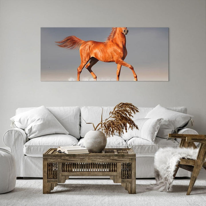 Wandbilder Dekoration Wohnzimmer Tiere Pferd Galopp Geschwindigkeit Bilder auf Leinwand 120x50cm Lei