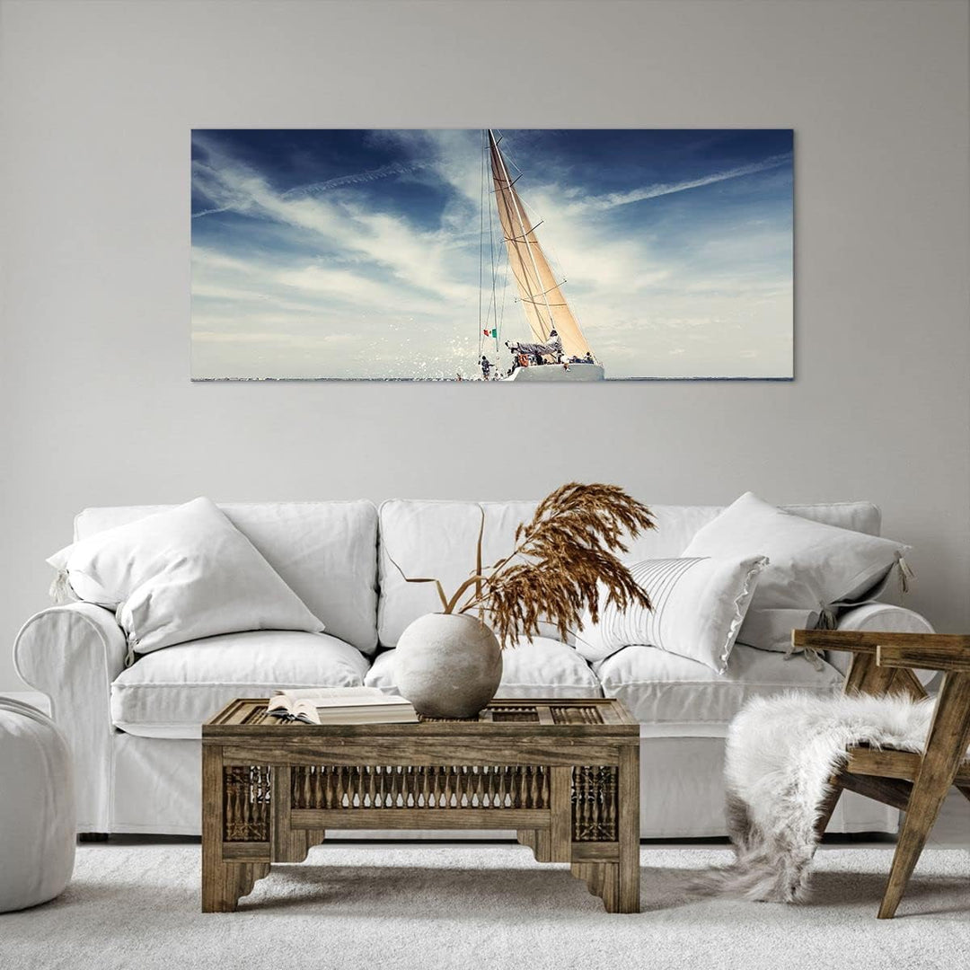 Wandbilder Dekoration Wohnzimmer Segeln Yacht Reise Panorama Bilder auf Leinwand 120x50cm Leinwandbi