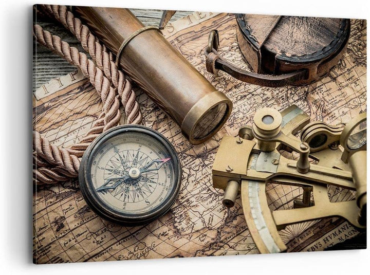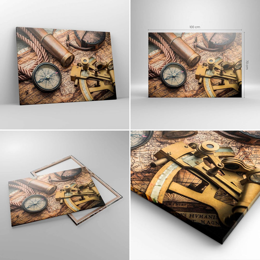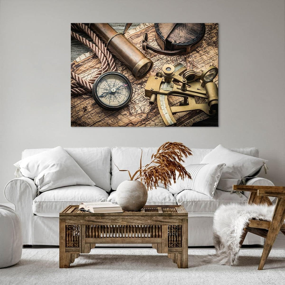 ARTTOR Bilder auf Leinwand 100x70cm Leinwandbild Kompass Kompass Karte Gross Wanddeko Bild Schlafzim