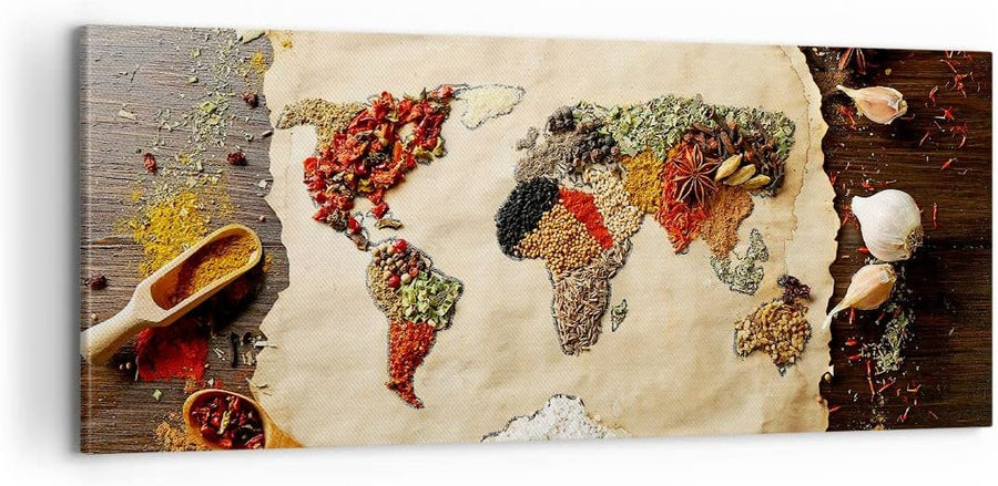 Panorama Bilder auf Leinwand 100x40cm Leinwandbild Welt Karte Gewürze Farben Gross Wanddeko Bild Sch