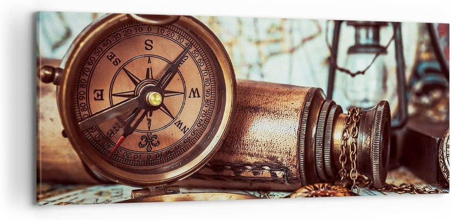 Panorama Bilder auf Leinwand 100x40cm Leinwandbild Kompass Teleskop Abenteuer antik Gross Wanddeko B