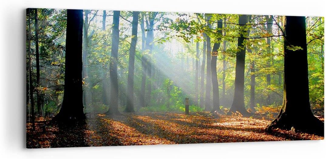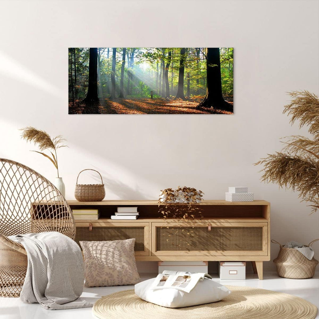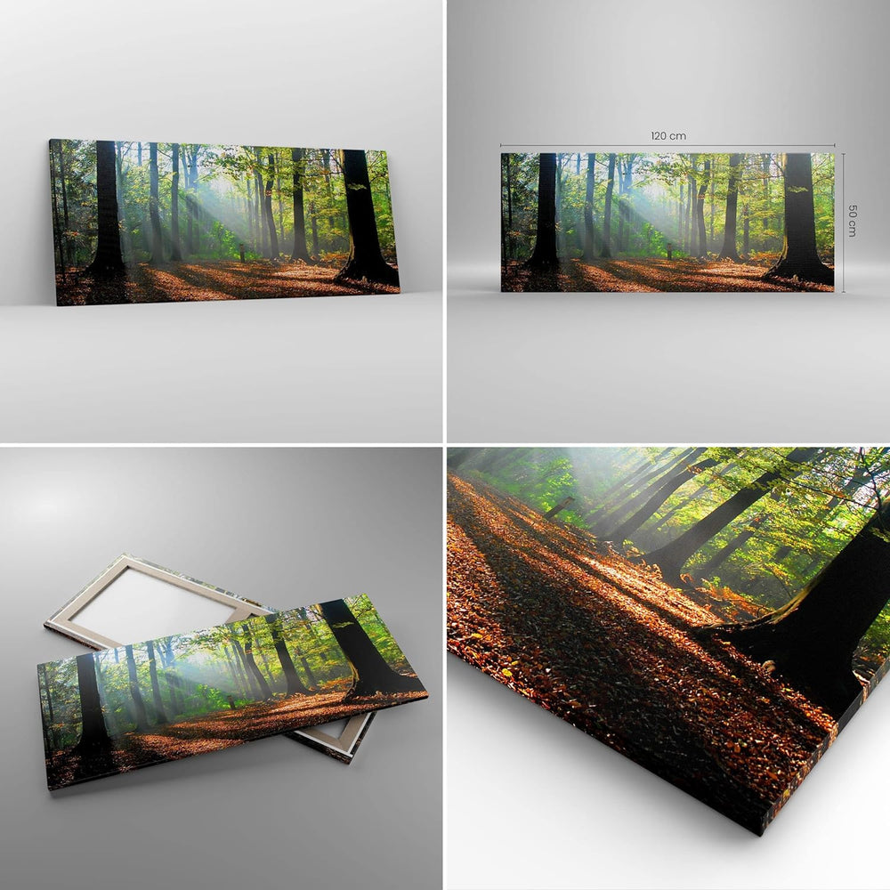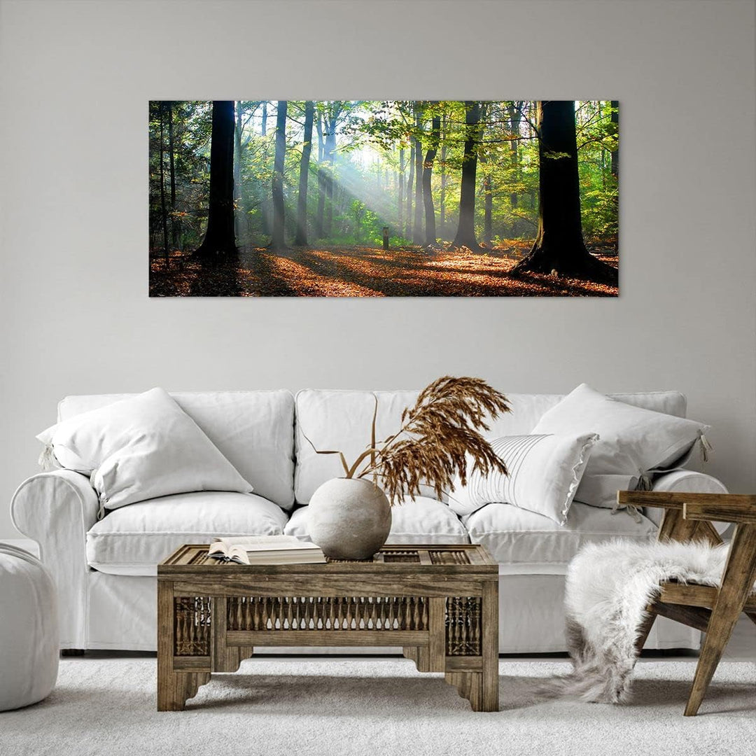Wandbilder Dekoration Wohnzimmer Wald Blätter Sonne Panorama Bilder auf Leinwand 120x50cm Leinwandbi