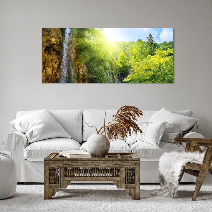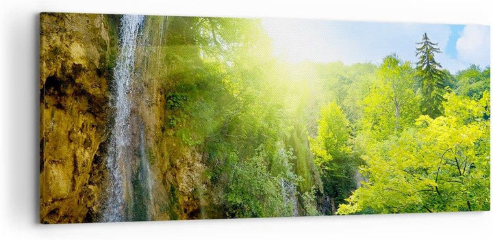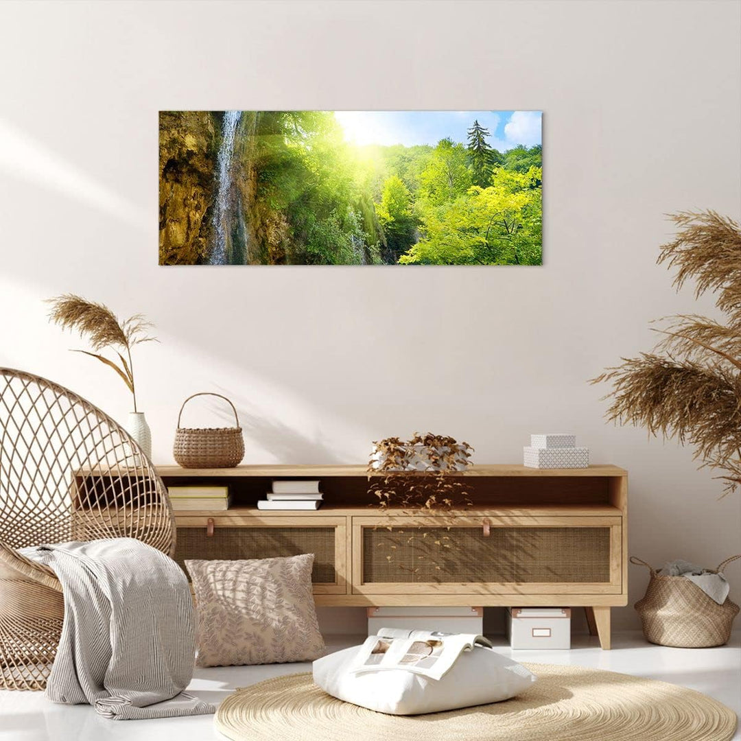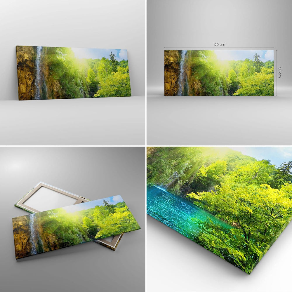 Wandbilder Dekoration Wohnzimmer Wasserfall Forrest Himmel Panorama Bilder auf Leinwand 120x50cm Lei