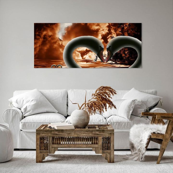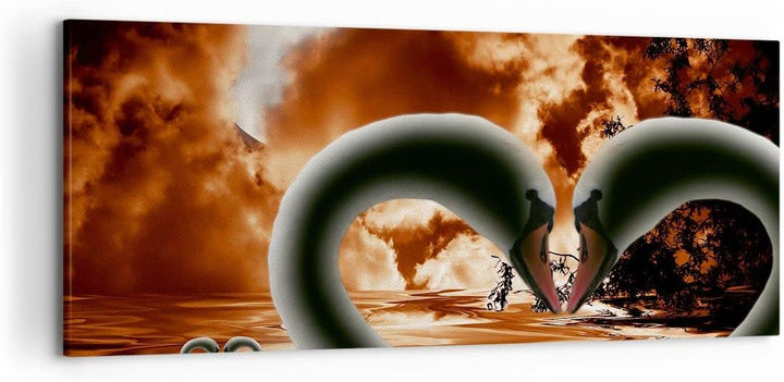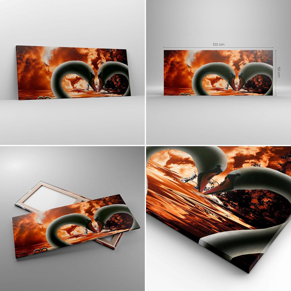 Wandbilder Dekoration Wohnzimmer Schwäne Nacht Liebe Panorama Bilder auf Leinwand 120x50cm Leinwandb