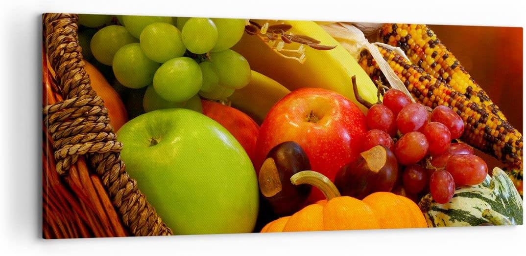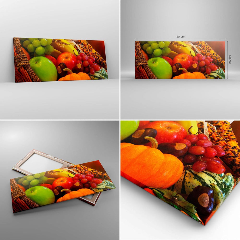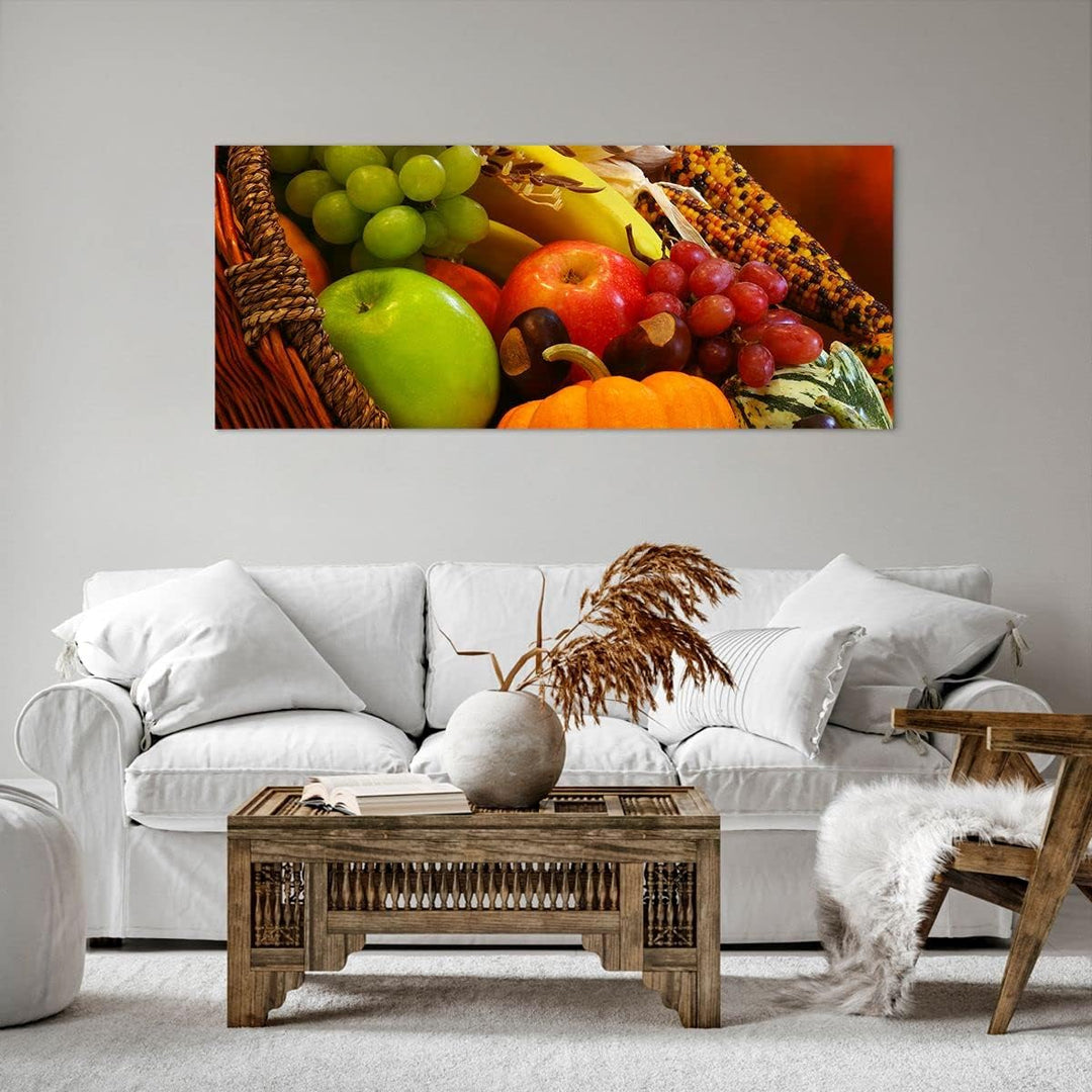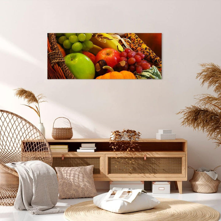 Wandbilder Dekoration Wohnzimmer Weidenkorb Obst Gemüse Panorama Bilder auf Leinwand 120x50cm Leinwa