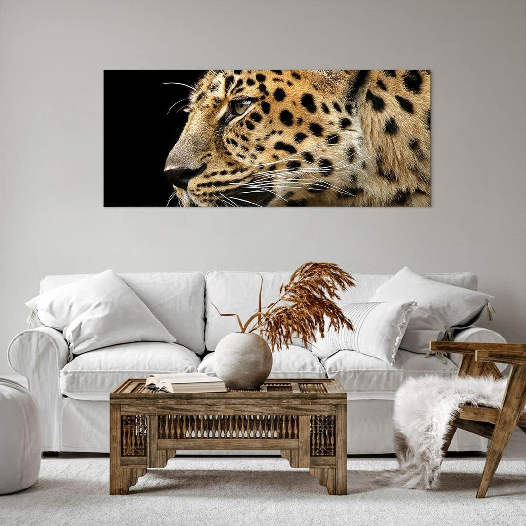 Wandbilder Dekoration Wohnzimmer Tiere Leopard wilde Katze wilde Tiere Bilder auf Leinwand 120x50cm