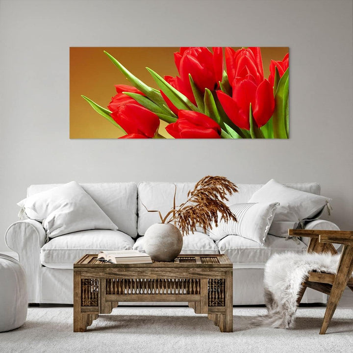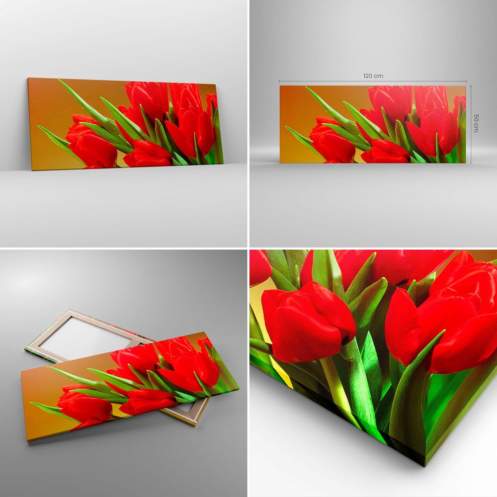 Wandbilder Dekoration Wohnzimmer Tulpen Blumen Feld Plantage Panorama Bilder auf Leinwand 120x50cm L