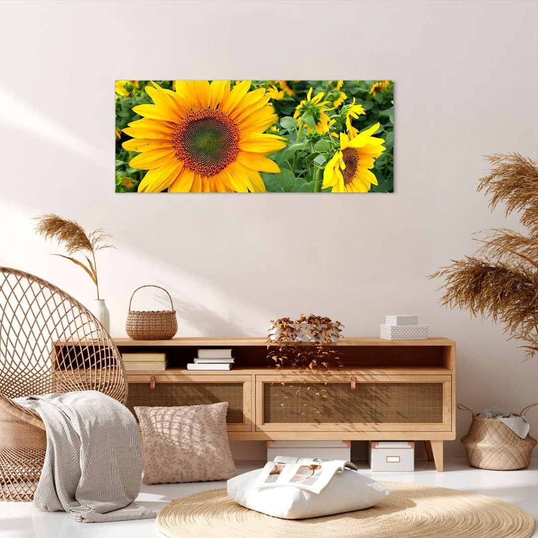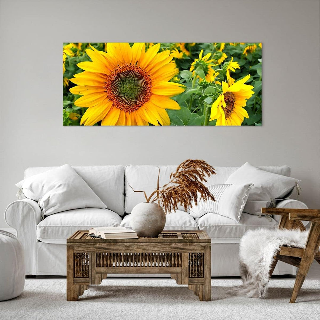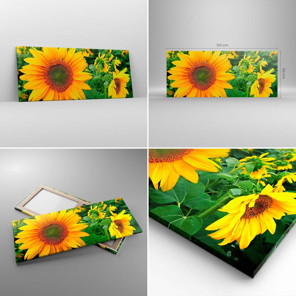 Wandbilder Dekoration Wohnzimmer Wolken Sonnenblumen Plantagen Panorama Bilder auf Leinwand 120x50cm