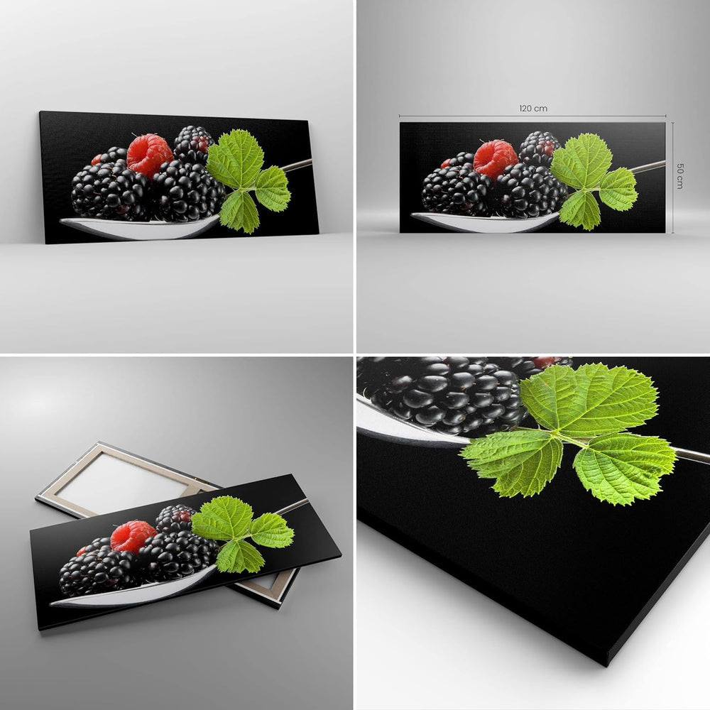 Wandbilder Dekoration Wohnzimmer Löffel Himbeere Brombeere Frucht Panorama Bilder auf Leinwand 120x5