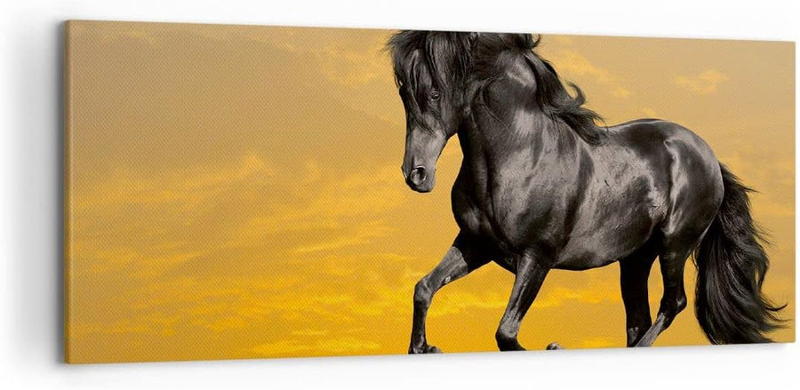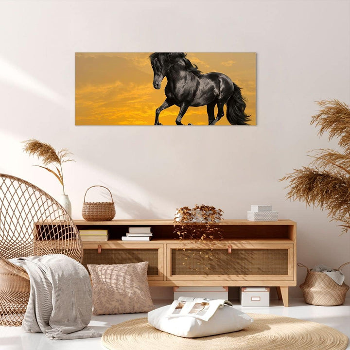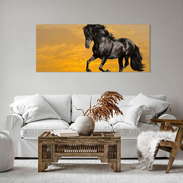 Wandbilder Dekoration Wohnzimmer Tiere Pferd Laufen Wiese Panorama Bilder auf Leinwand 120x50cm Lein