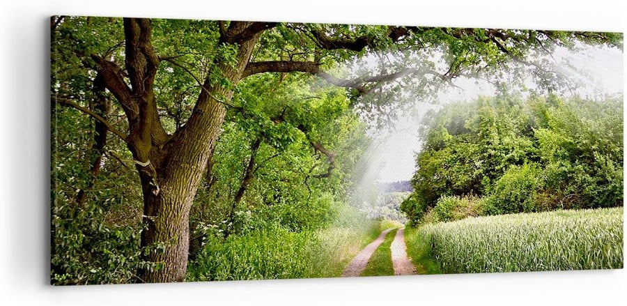 Wandbilder Dekoration Wohnzimmer Pfad Natur Wald Grün Panorama Bilder auf Leinwand 120x50cm Leinwand