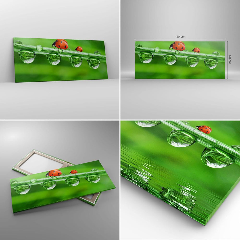 Wandbilder Dekoration Wohnzimmer Marienkäfer Wasser Grün Umwelt Panorama Bilder auf Leinwand 120x50c