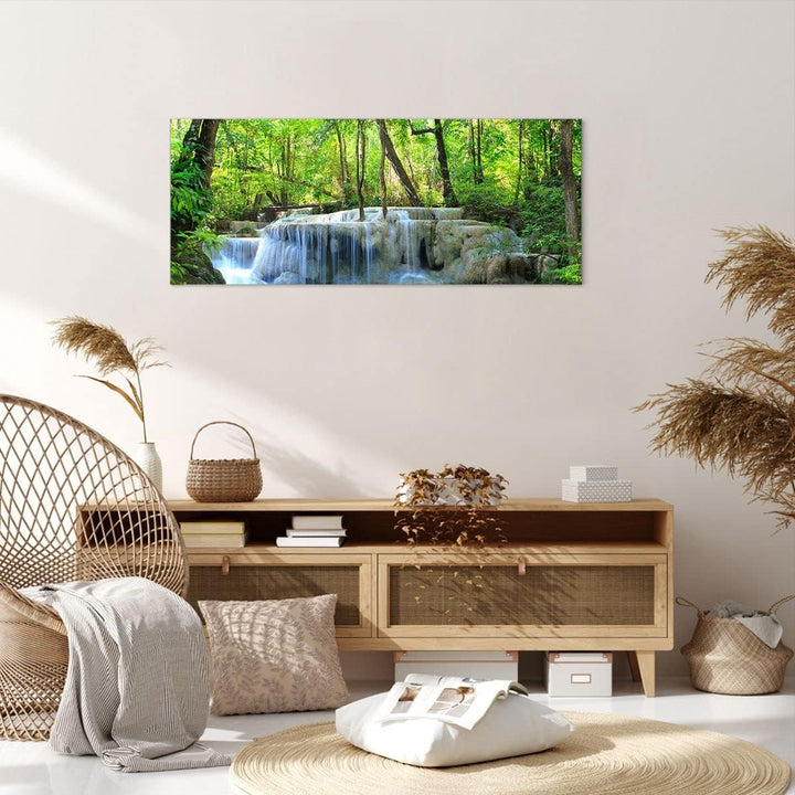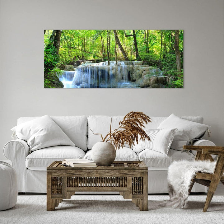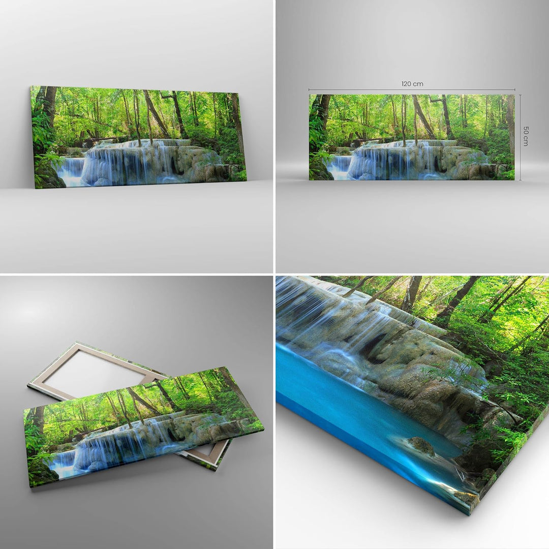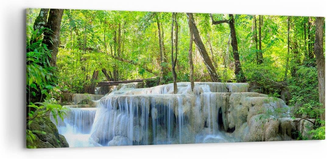 Wandbilder Dekoration Wohnzimmer Wasserfall Wald Umwelt Panorama Bilder auf Leinwand 120x50cm Leinwa