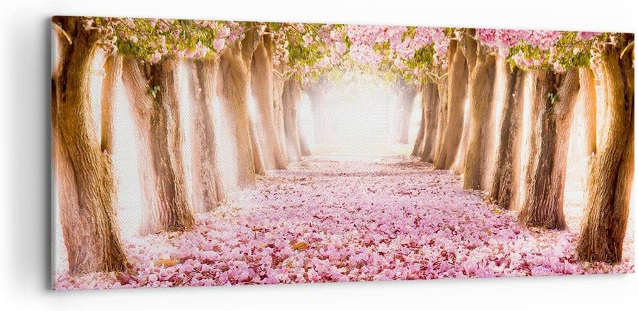 Wandbilder Dekoration Wohnzimmer Baum Blumen Kirsche Natur Panorama Bilder auf Leinwand 120x50cm Lei