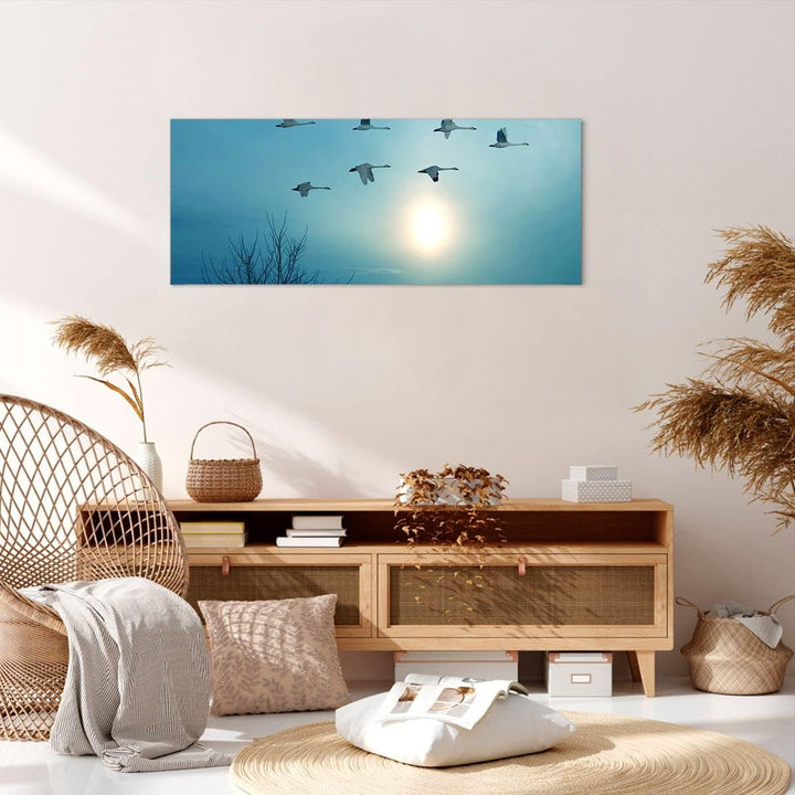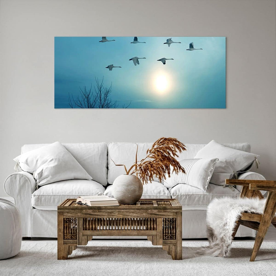 Wandbilder Dekoration Wohnzimmer Storch Vogel Natur Panorama Bilder auf Leinwand 120x50cm Leinwandbi