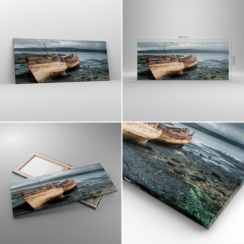 Wandbilder Dekoration Wohnzimmer Boot Wrack Ufer Panorama Bilder auf Leinwand 120x50cm Leinwandbild