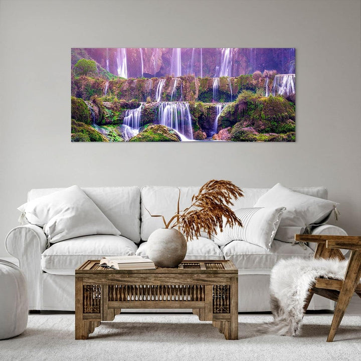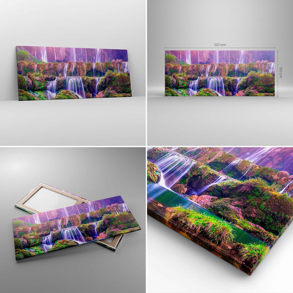 Wandbilder Dekoration Wohnzimmer Wasserfall Natur Panorama Bilder auf Leinwand 120x50cm Leinwandbild