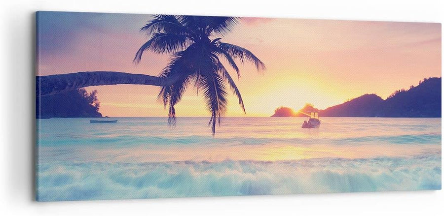 Wandbilder Dekoration Wohnzimmer Meer Strand Palme Panorama Bilder auf Leinwand 120x50cm Leinwandbil