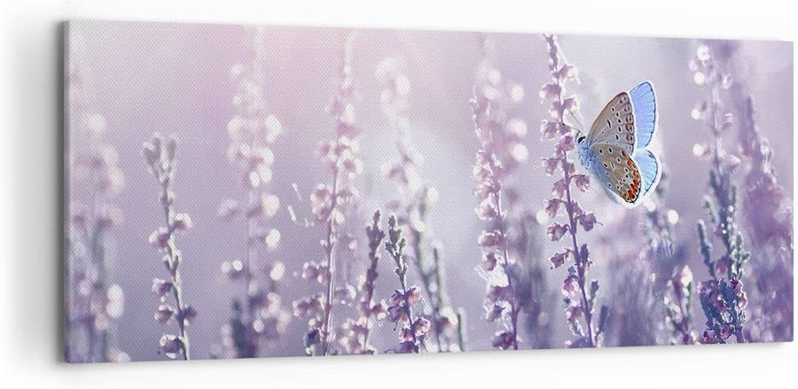 Wandbilder Dekoration Wohnzimmer Schmetterling Wiese Blume Panorama Bilder auf Leinwand 120x50cm Lei