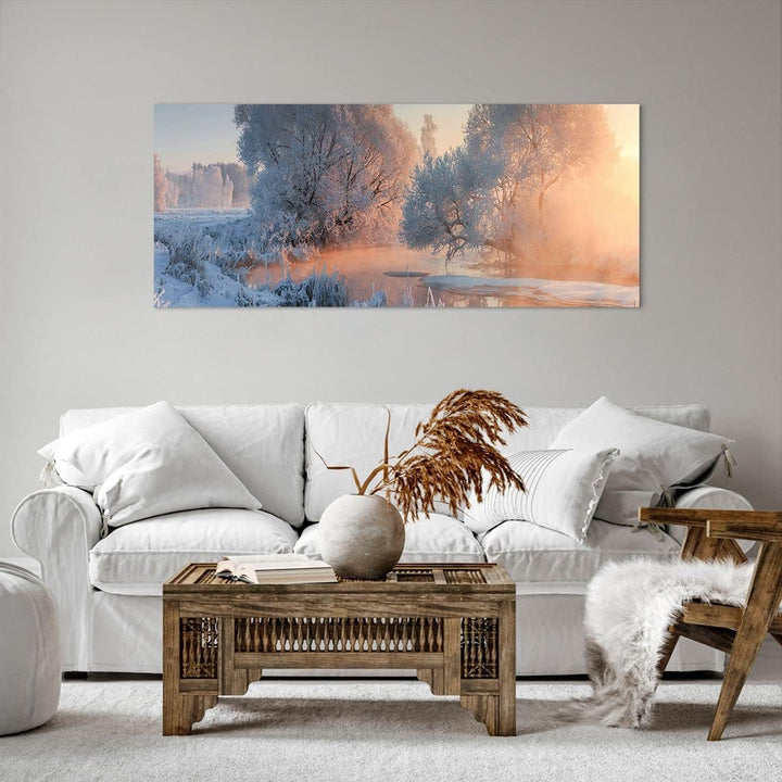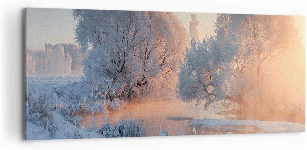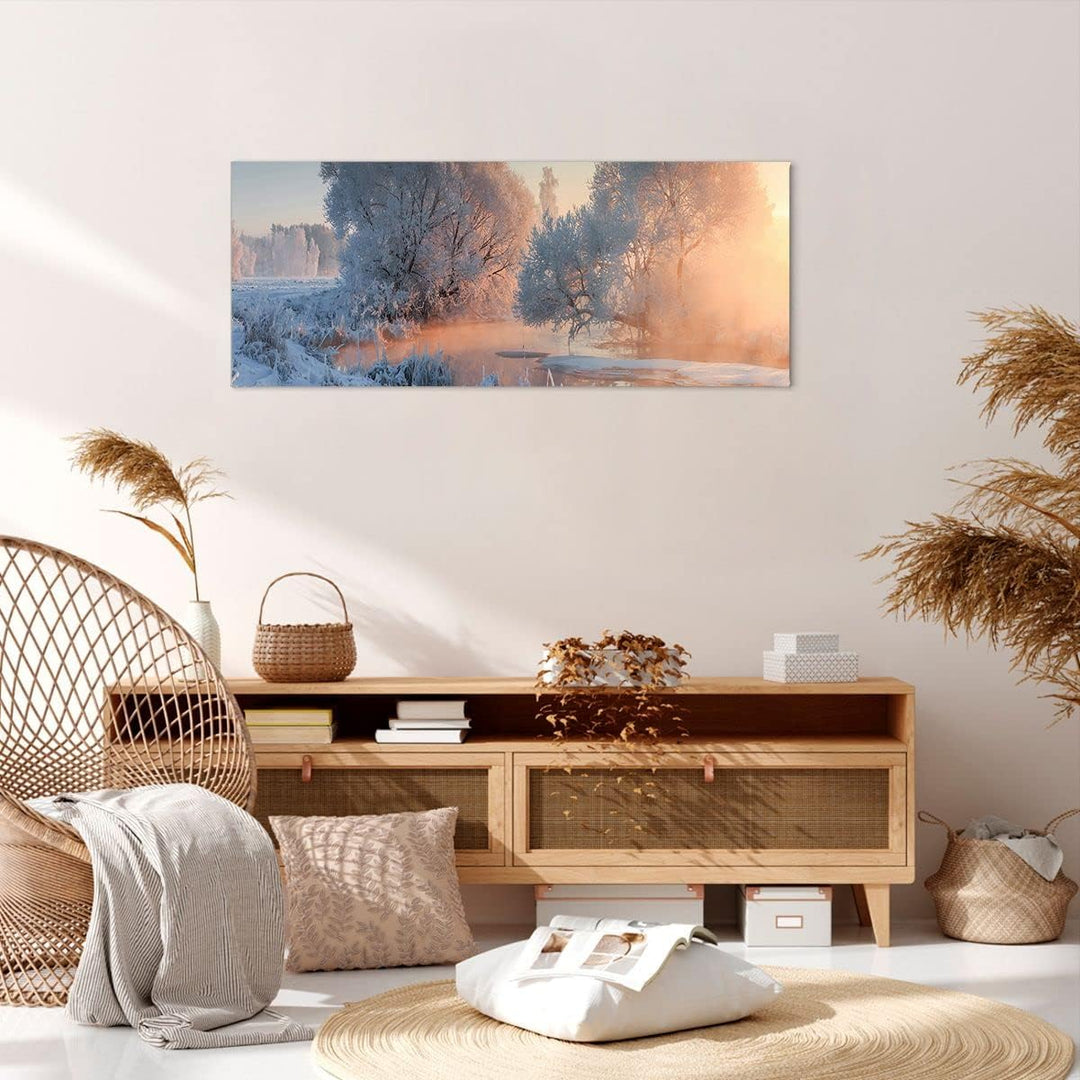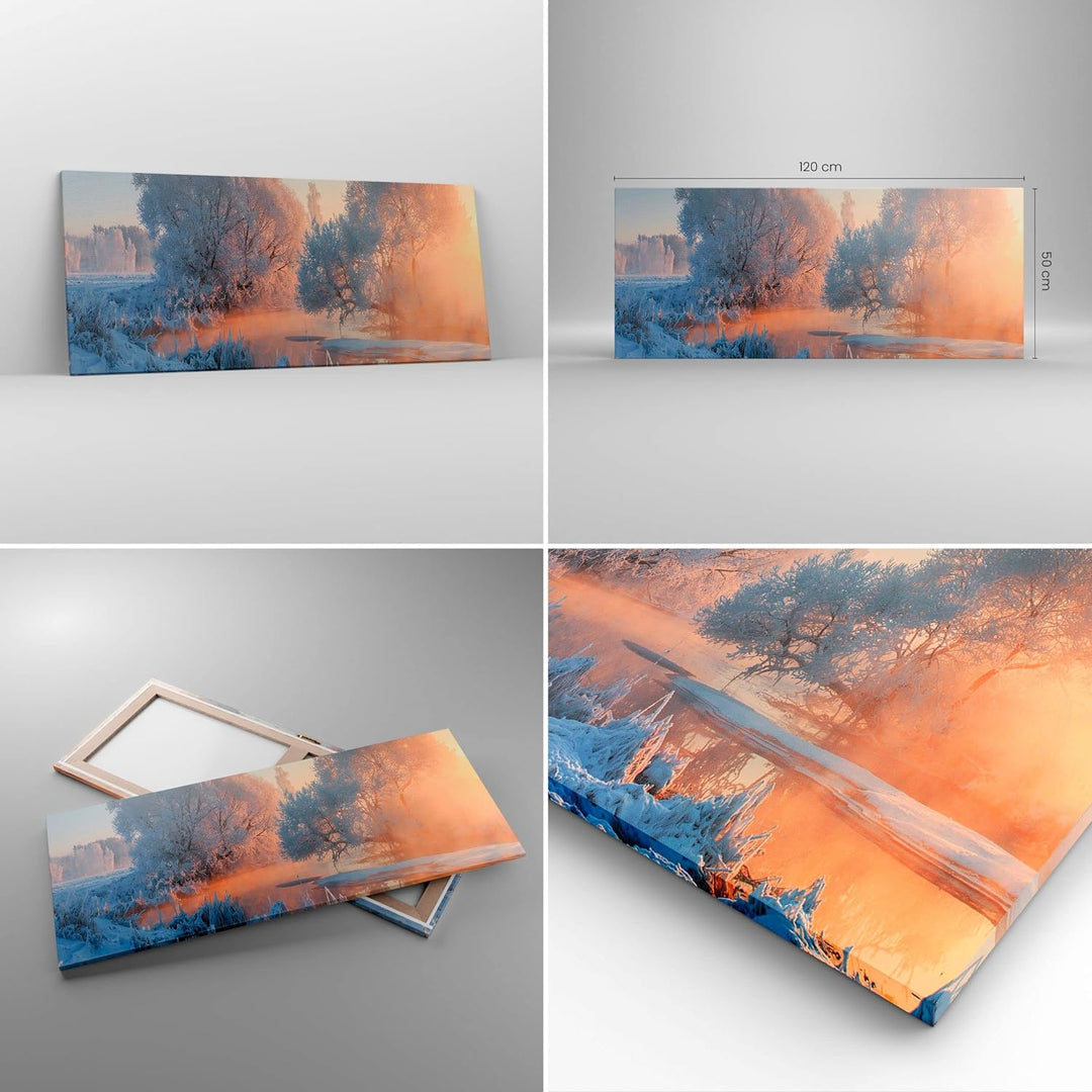 Wandbilder Dekoration Wohnzimmer Winter Schnee Fluss Panorama Bilder auf Leinwand 120x50cm Leinwandb