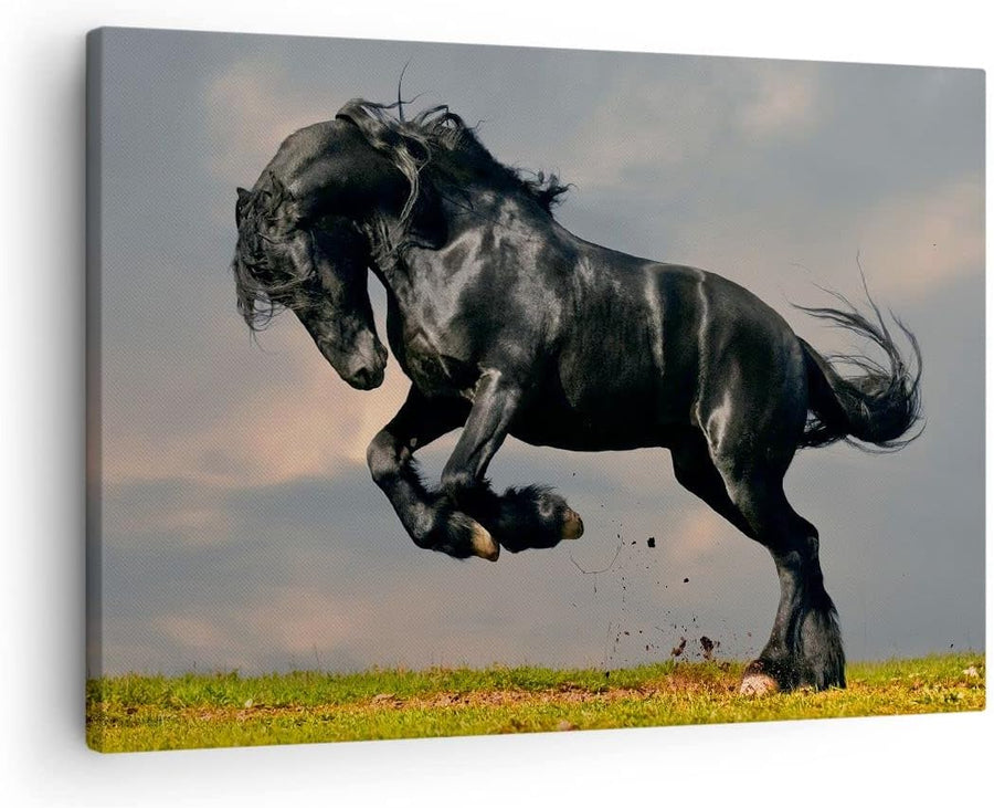 ARTTOR Bilder auf Leinwand Wolke Pferd Wiese Natur Leinwandbild 70x50cm Wandbilder Dekoration Wohnzi