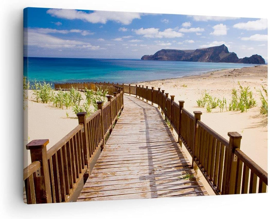 ARTTOR Bilder auf Leinwand Ozean Strand Sand Ufer Leinwandbild 70x50cm Wandbilder Dekoration Wohnzim