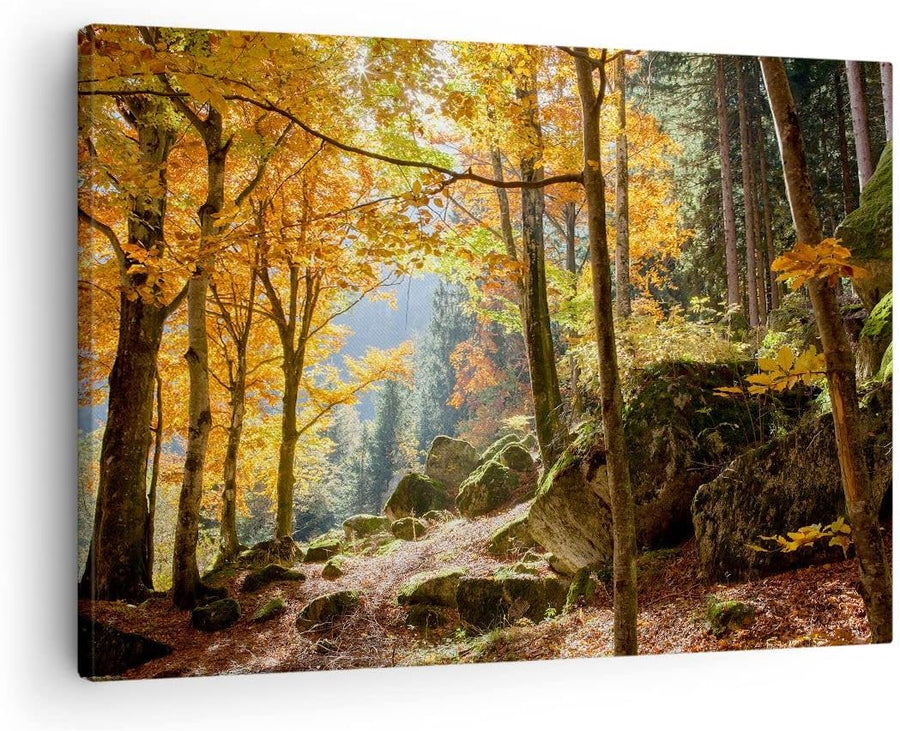 ARTTOR Bilder auf Leinwand Herbst berg wald natur Leinwandbild 70x50cm Wandbilder Dekoration Wohnzim