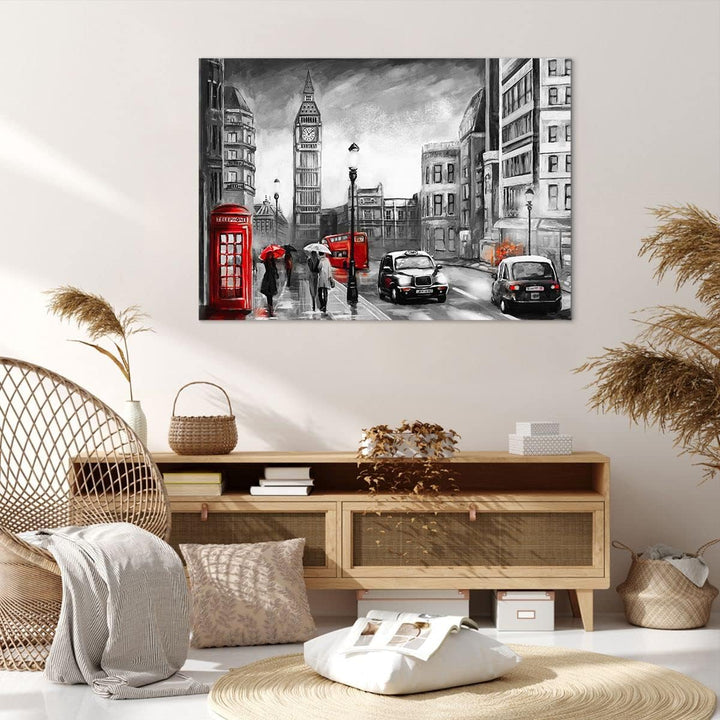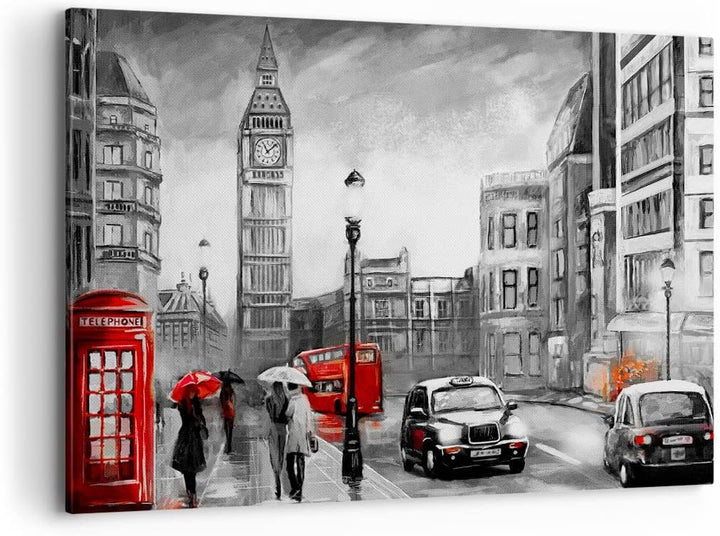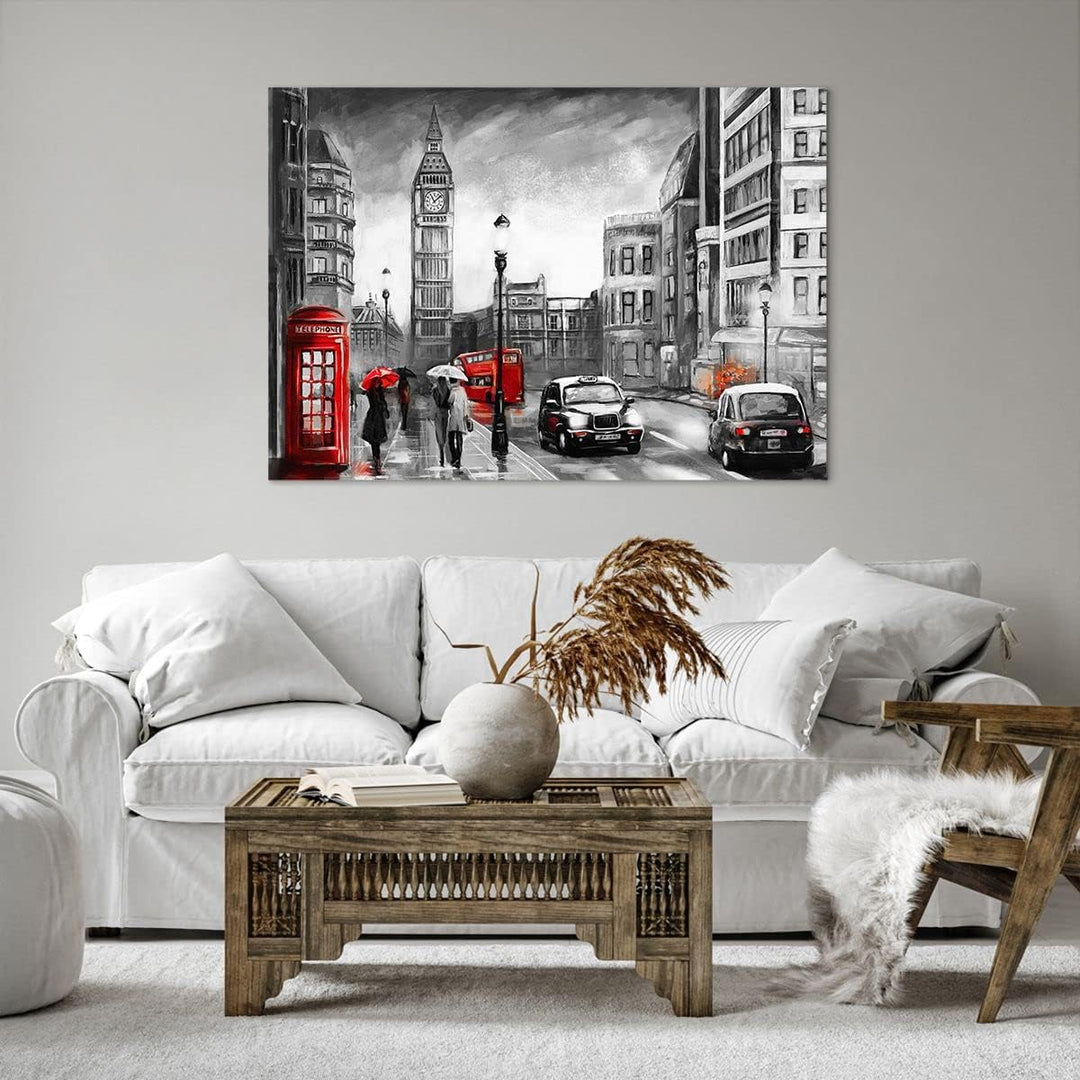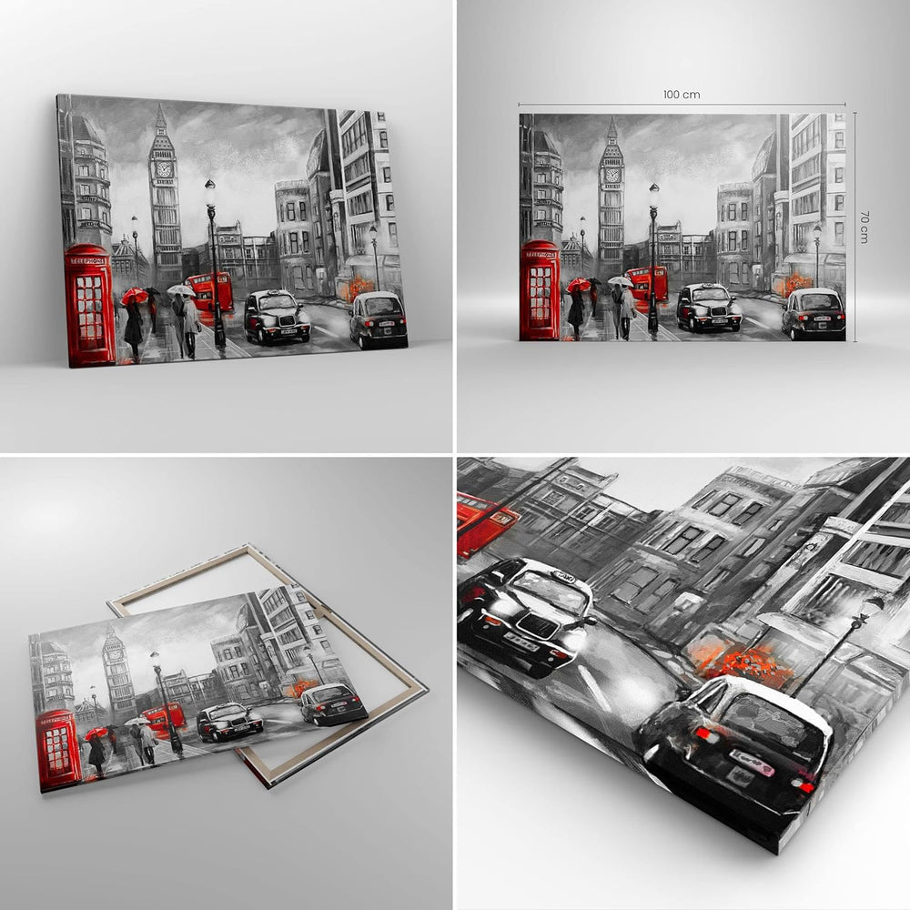 ARTTOR Bilder auf Leinwand 100x70cm Leinwandbild mit Rahmen London Bus Gross Wanddeko Bild Schlafzim