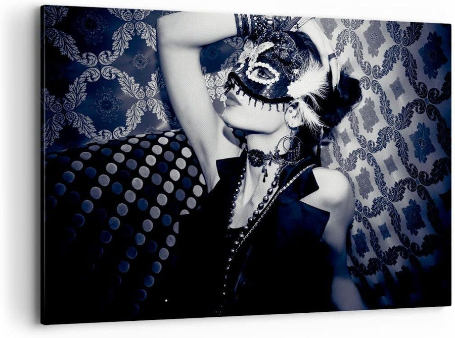 Bilder auf Leinwand 100x70cm Leinwandbild Frau Karneval Maske Mode Gross Wanddeko Bild Schlafzimmer