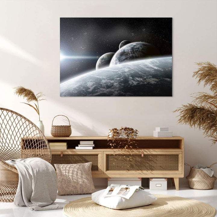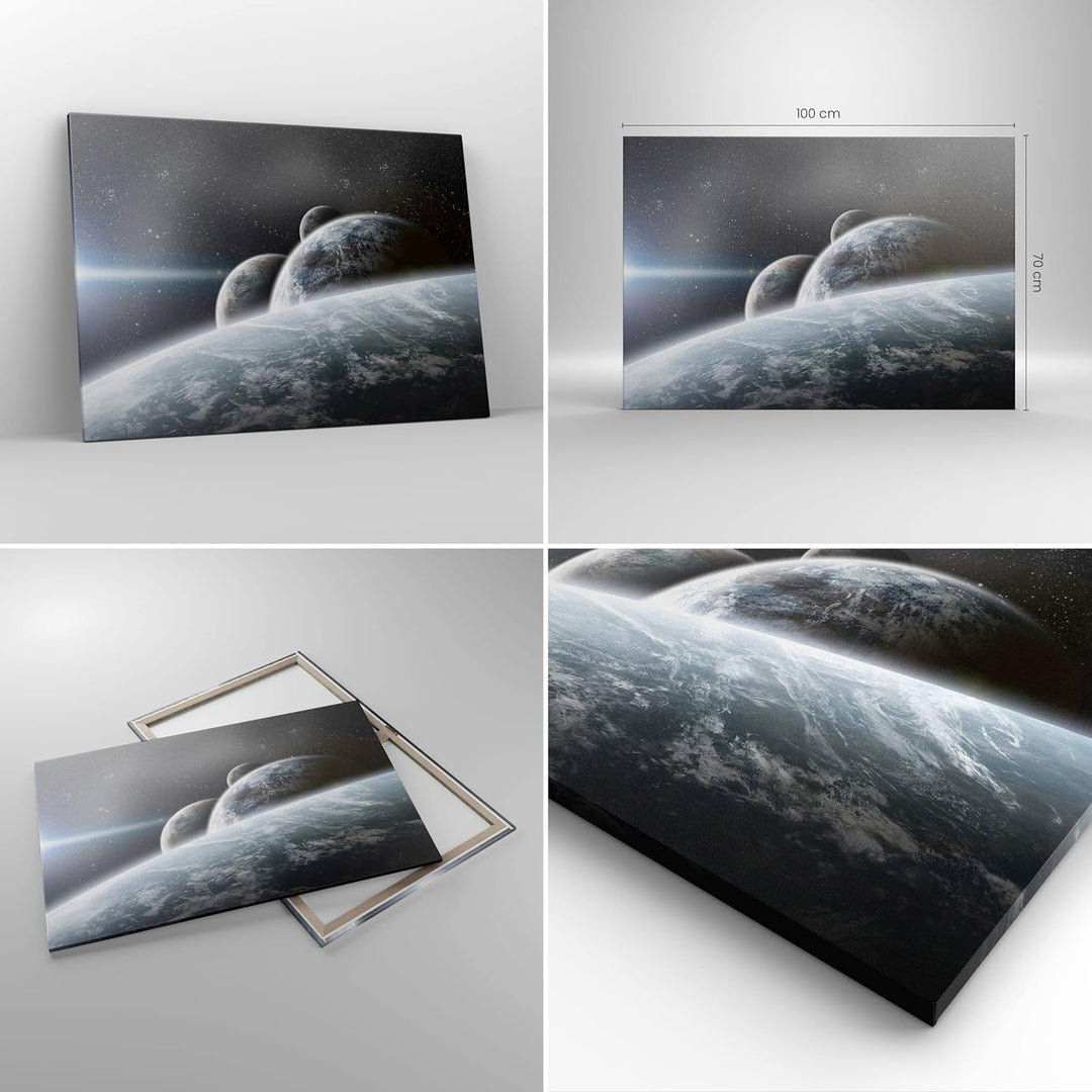 - Wandbilder sind eine einzigartige Dekoration, auch als Canvas Bilder bekannt, die als eine modische und moderne dekoratieve Lösung für jeden Designliebhaber gedacht sind. Thematische Kategorie des Bildes - Kunstdrucke: Weltraum und Astronomie,