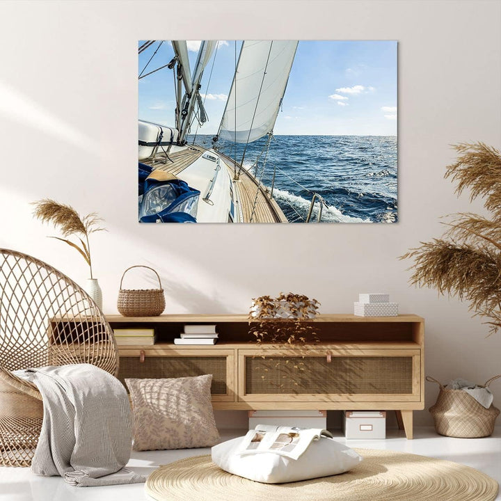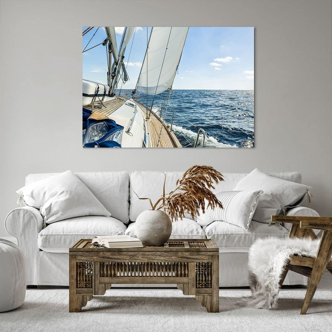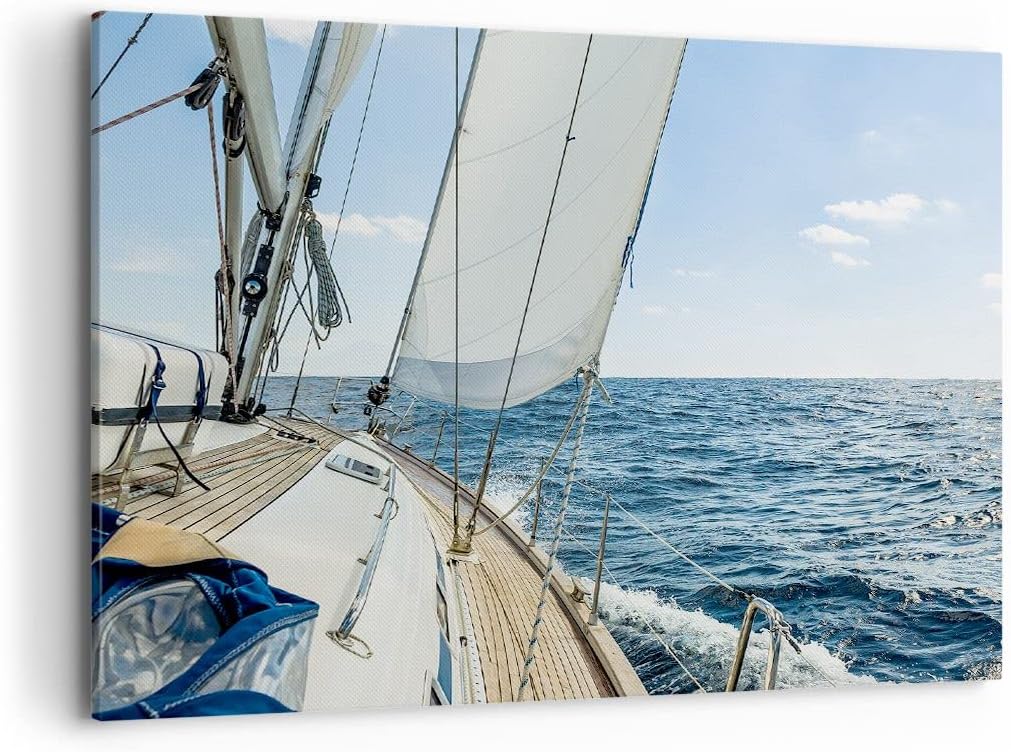 ARTTOR Bilder auf Leinwand 100x70cm Leinwandbild Meer Kreuzfahrt Segel Gross Wanddeko Bild Schlafzim