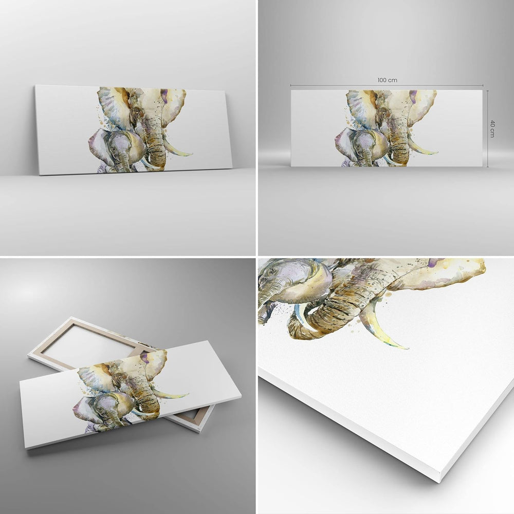 Panorama Bilder auf Leinwand 100x40cm Leinwandbild Elefanten tier safari afrika Gross Wanddeko Bild
