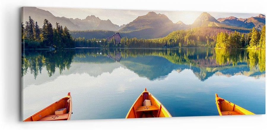 Panorama Bilder auf Leinwand 100x40cm Leinwandbild mit Rahmen See Natur Gross Wanddeko Bild Schlafzi