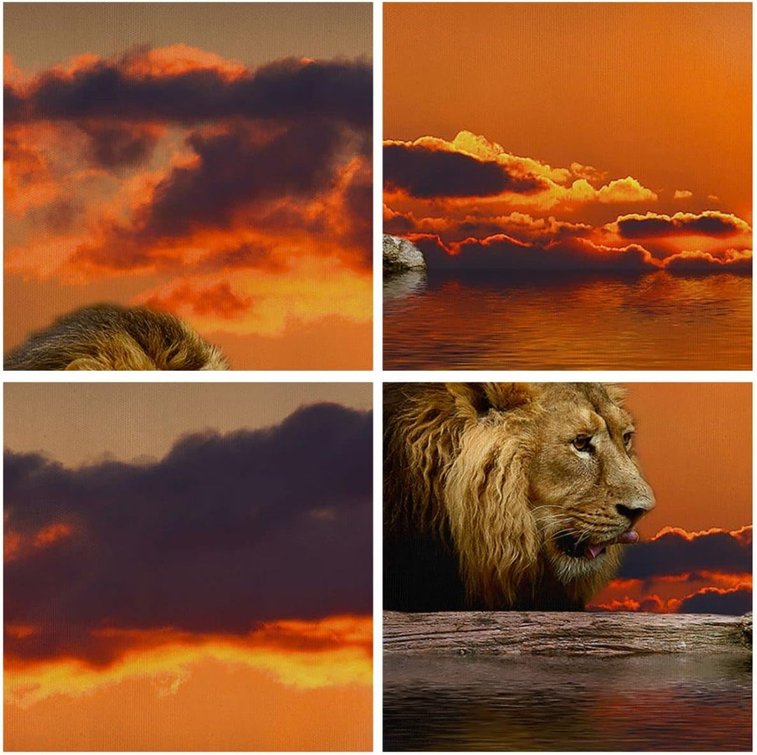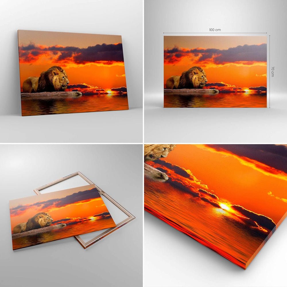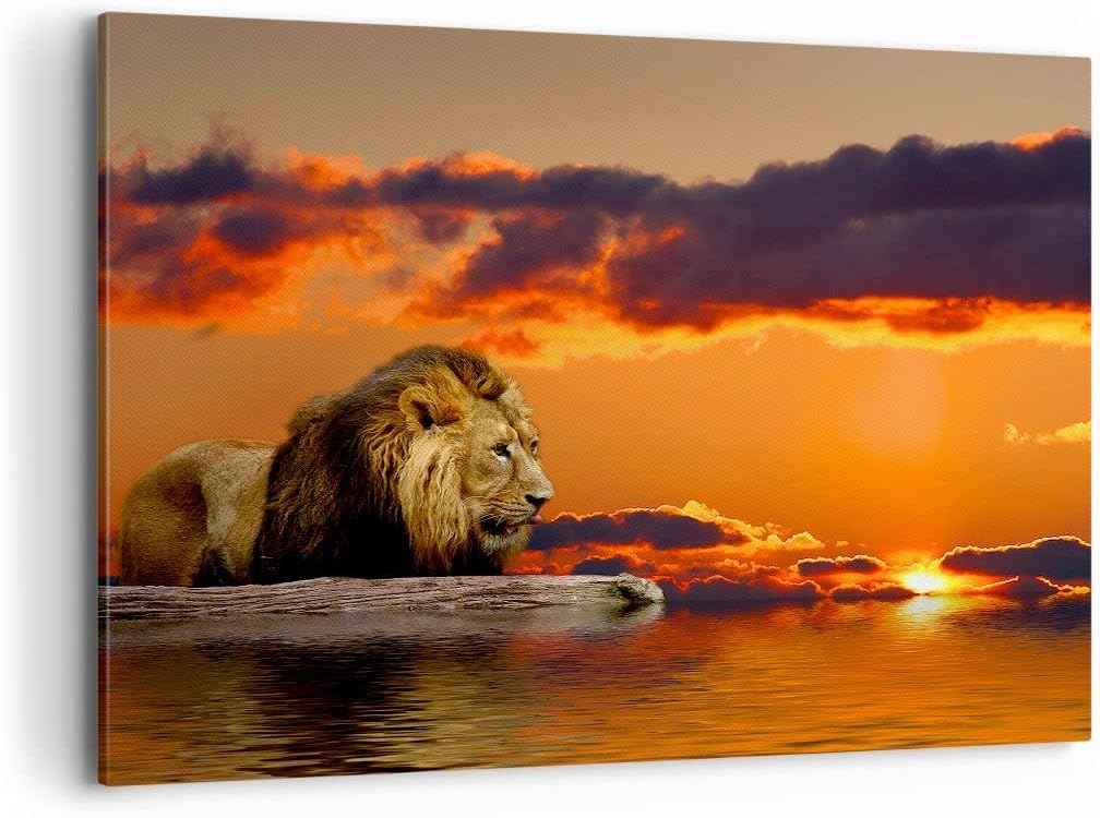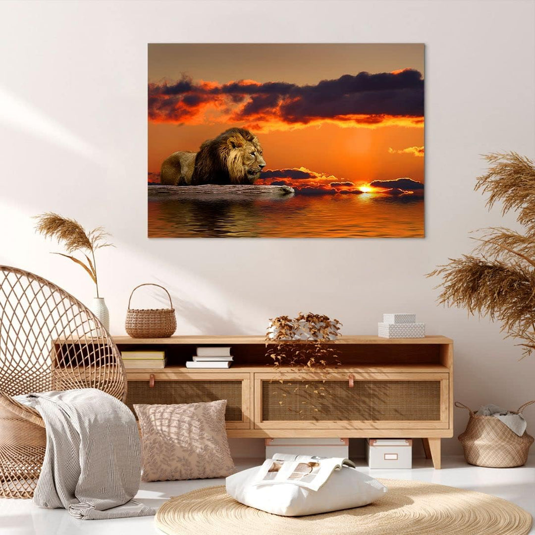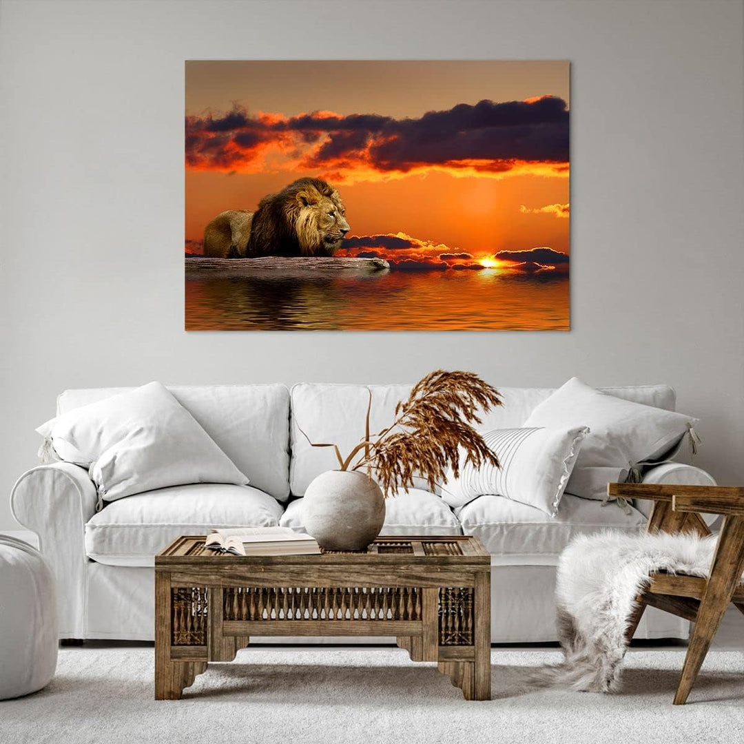 ARTTOR Bilder auf Leinwand 100x70cm Leinwandbild Löwe Sonne Landschaft Gross Wanddeko Bild Schlafzim