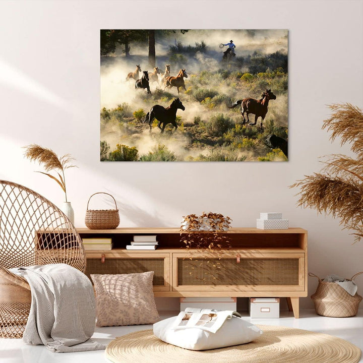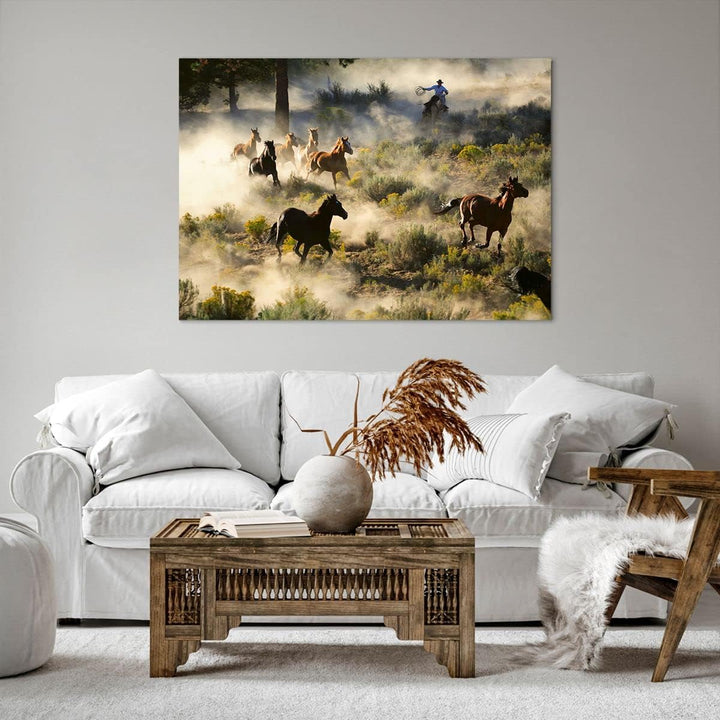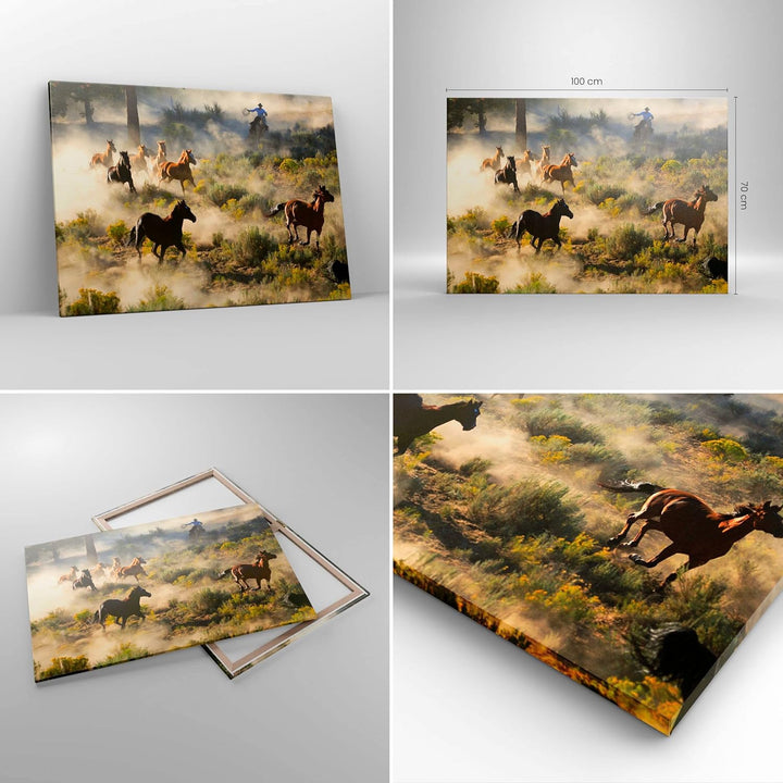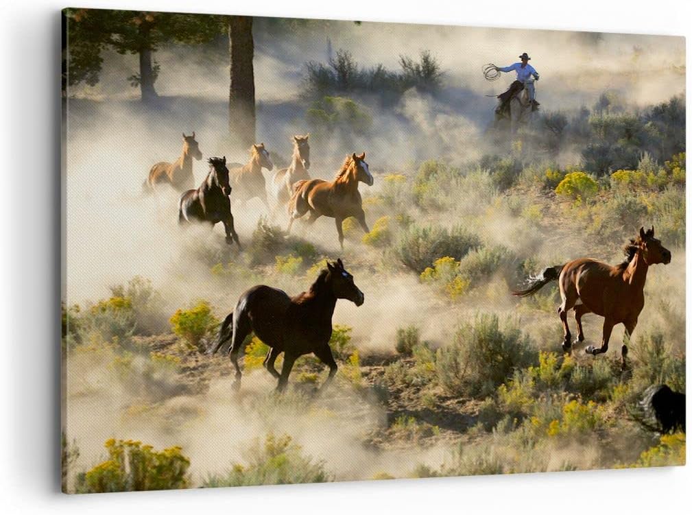 ARTTOR Bilder auf Leinwand 100x70cm Leinwandbild Cowboy Cowgirl Pferd Gross Wanddeko Bild Schlafzimm