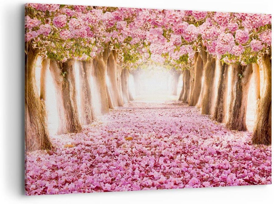 Bilder auf Leinwand 100x70cm Leinwandbild Baum Blumen Kirsche Natur Gross Wanddeko Bild Schlafzimmer