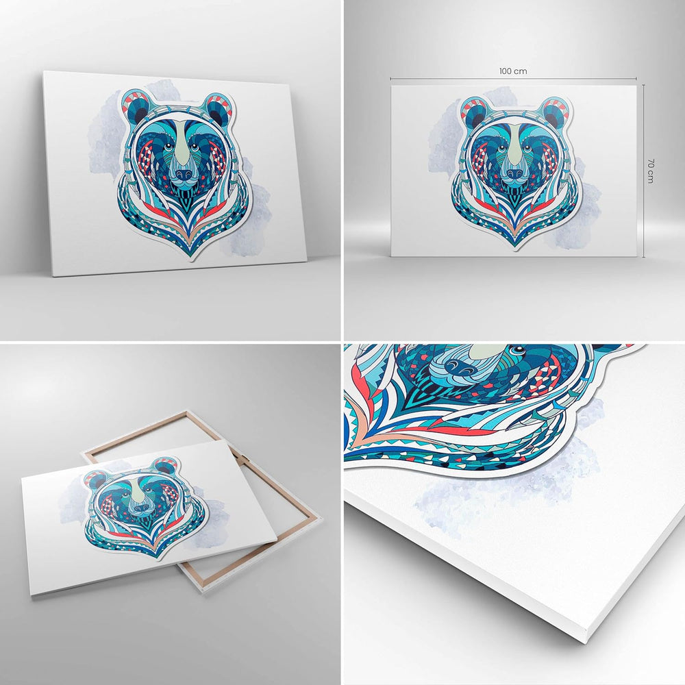 Bilder auf Leinwand 100x70cm Leinwandbild Bär Illustration Traum blumig Gross Wanddeko Bild Schlafzi