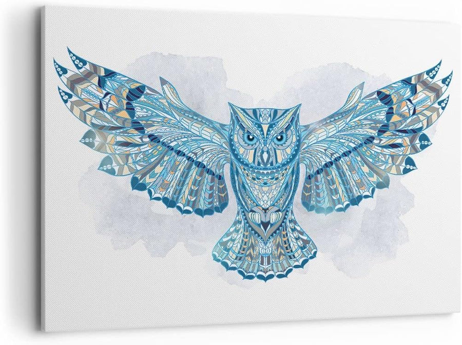 Bilder auf Leinwand 100x70cm Leinwandbild Eule Flügel Tierwelt Grafik Gross Wanddeko Bild Schlafzimm