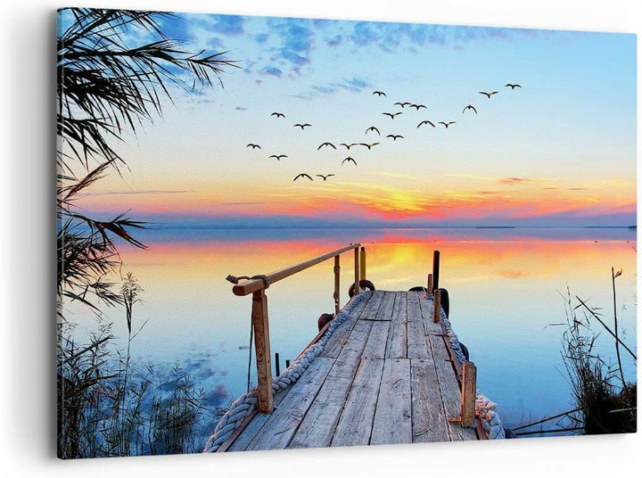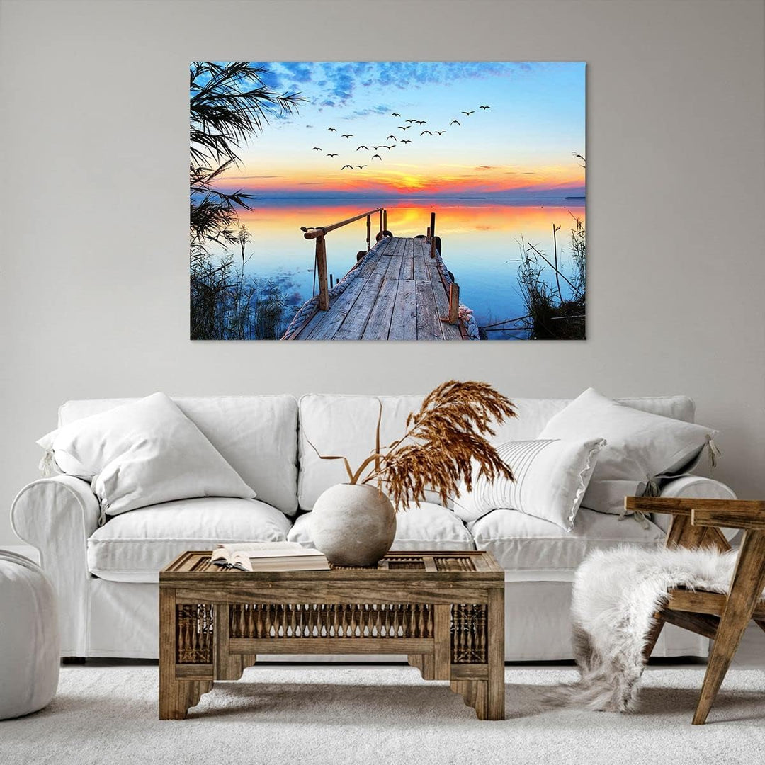 ARTTOR Bilder auf Leinwand 100x70cm Leinwandbild mit Rahmen Brücke See Gross Wanddeko Bild Schlafzim