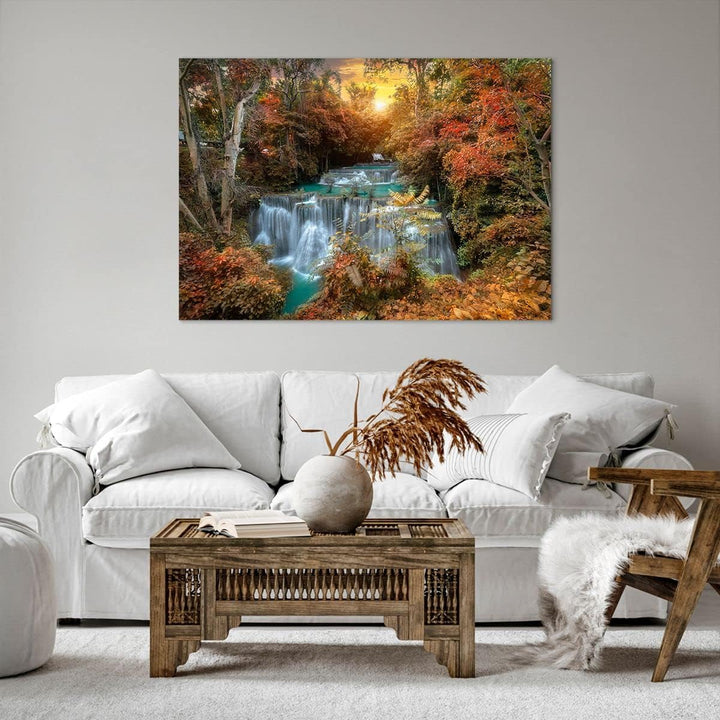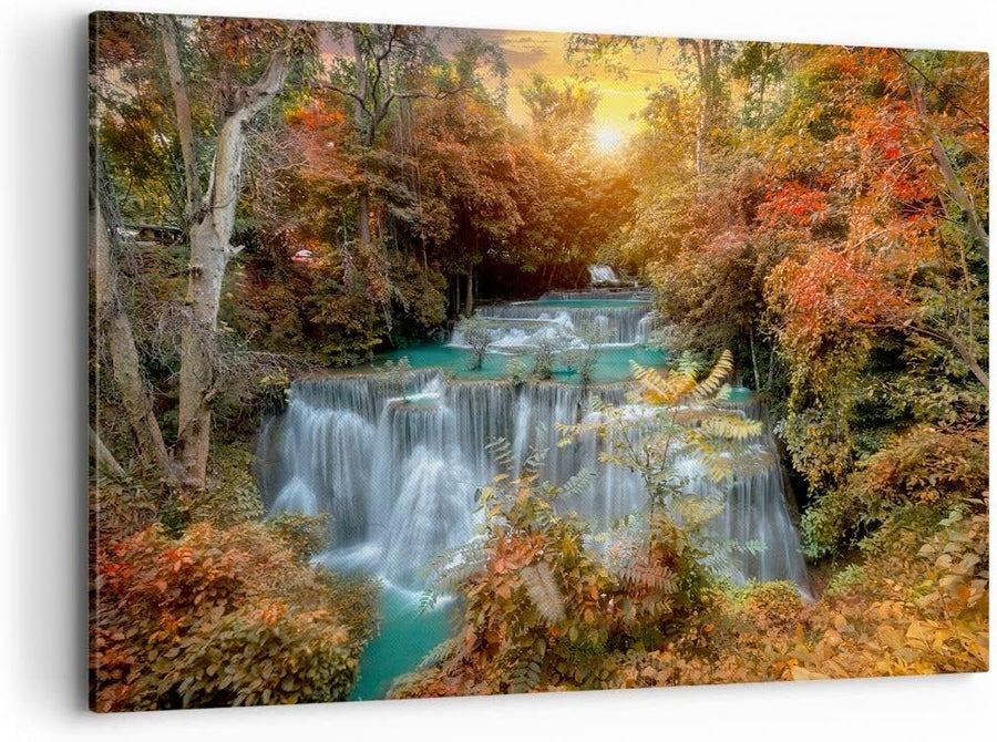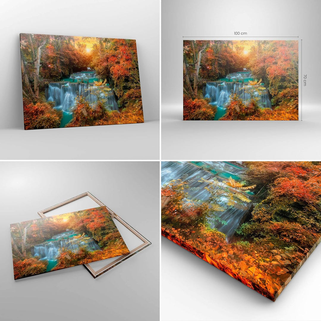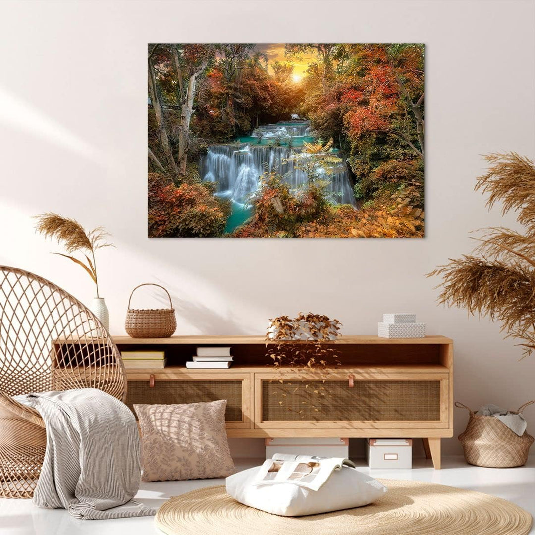 ARTTOR Bilder auf Leinwand 100x70cm Leinwandbild Park Wasserfall Wasser Gross Wanddeko Bild Schlafzi