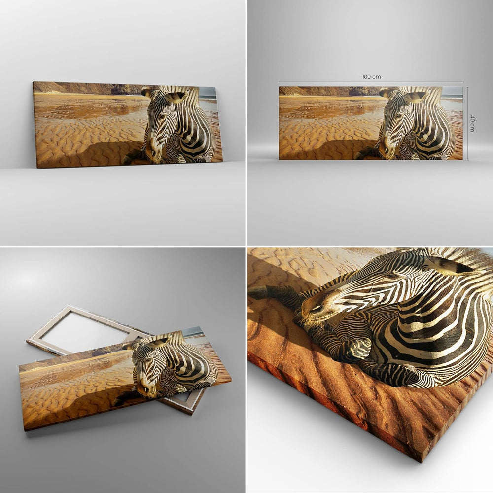 Panorama Bilder auf Leinwand 100x40cm Leinwandbild Zebra Strand Landschaft Gross Wanddeko Bild Schla