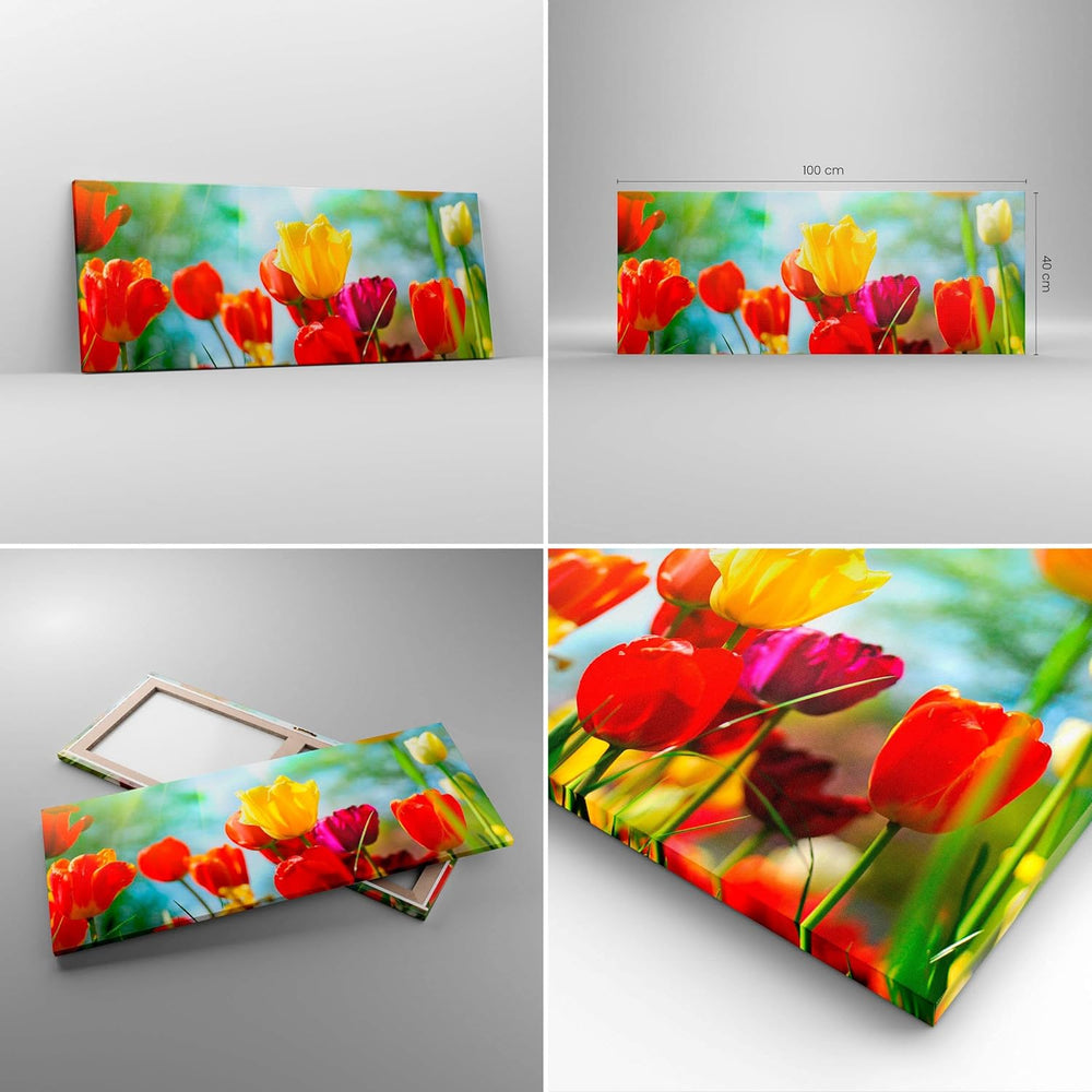 Panorama Bilder auf Leinwand 100x40cm Leinwandbild Tulpe Blume Plantage Wiese Gross Wanddeko Bild Sc