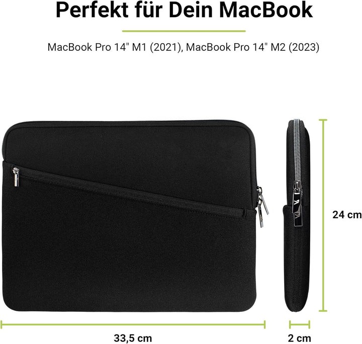 • SICHERER MACBOOK SCHUTZ: In der Neopren Tasche mit weichem Innenfutter und widerstandsfähigem Äusserem ist das MacBook Pro 14 Zoll (M1/M2/M3) unterwegs sicher verstaut und geschützt