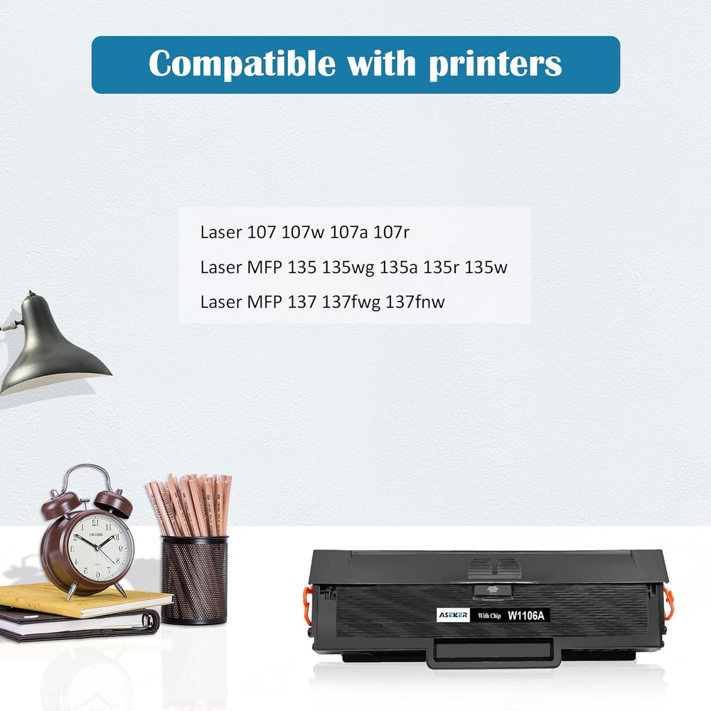 - Packungsinhalt - - Beinhaltet 1 Packung Schwarz Kompatibel 106A W1106A Tonerkartuschen; Kompatibel für 106A W1106A Tonerkartuschen.