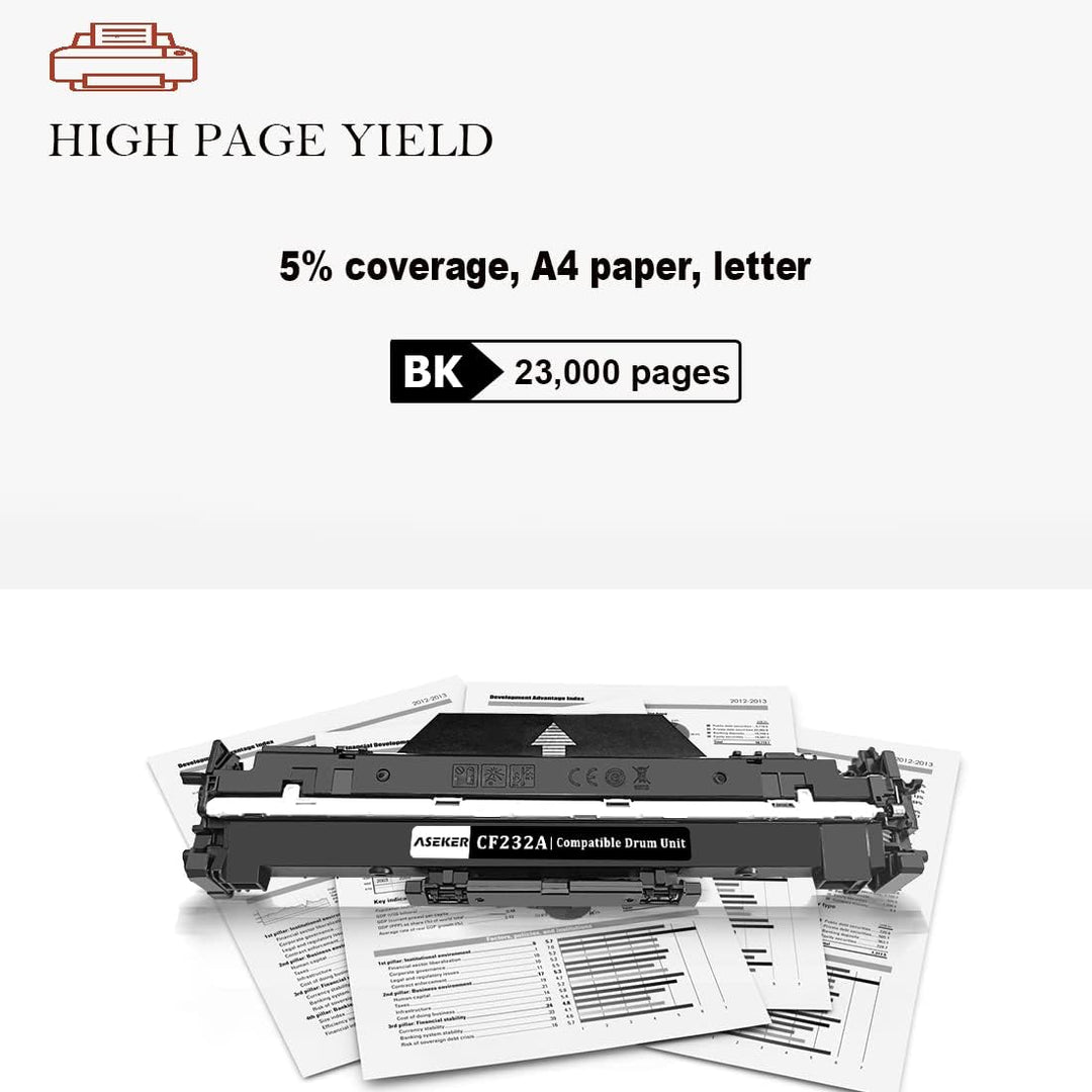 - Packungsinhalt - - Enthält 1 Packung kompatible Trommelkartusche für HP 32A CF232A Schwarz Trommelkartusche.